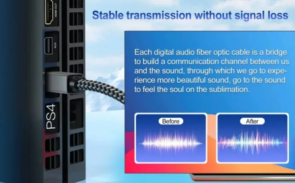 Los cables ópticos transfieren la señal usando la luz; eliminando así por completo cualquier posibilidad de interferencia RFI, EMI o bucle de tierra.
