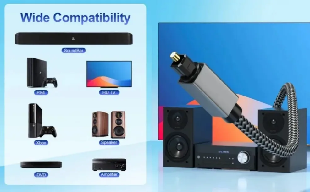 Nuestro nuevo cable de audio digital para uso con receptor Dolby Digital, procesador de señal digital, máquinas DAT, reproductor Divx, reproductor de DVD, reproductor de CD, receptor DSS, reproductor/grabador DAT, reproductor/grabador MINI Disc, para Ps3, XBOX, para ALESIS o cualquier componente que utilice conectores TOSLink normales de tamaño completo.