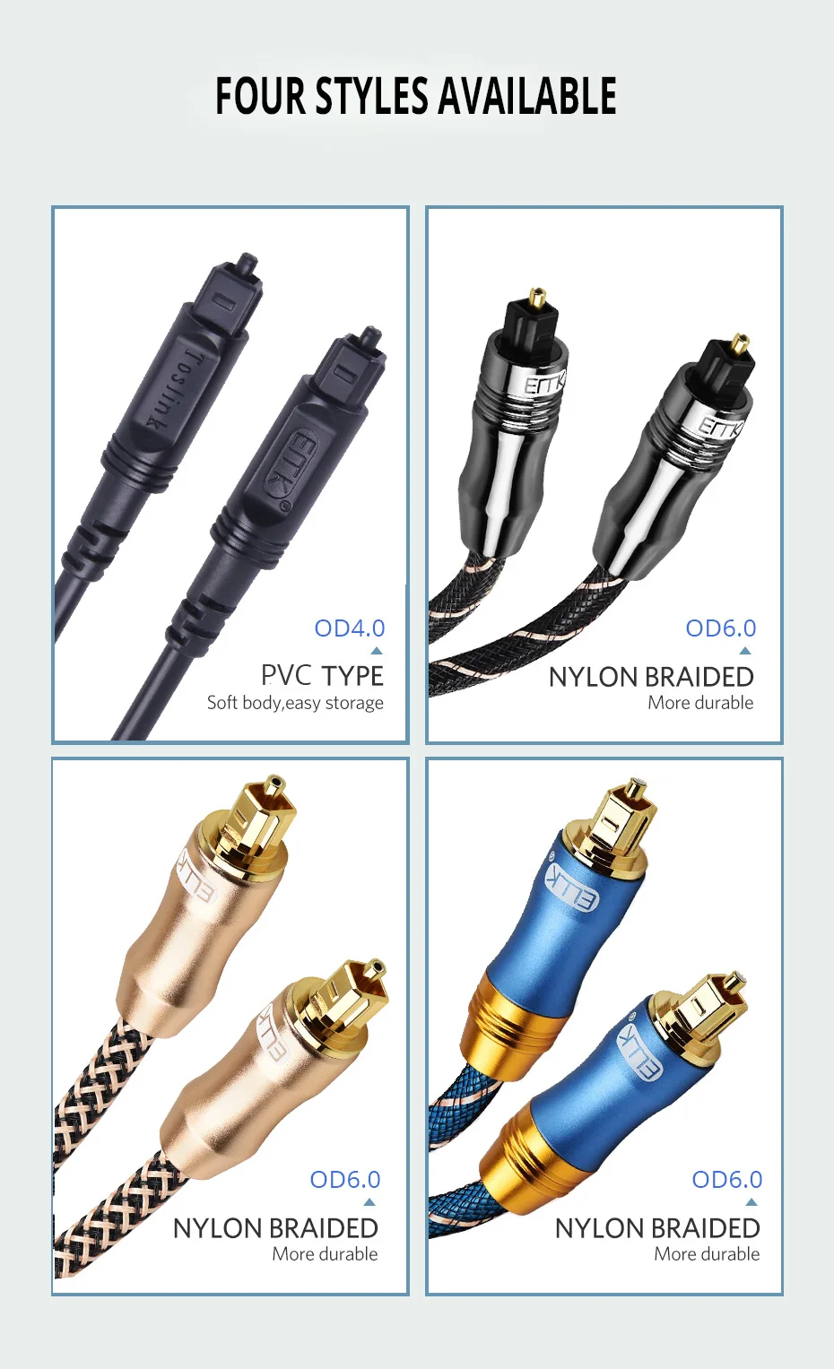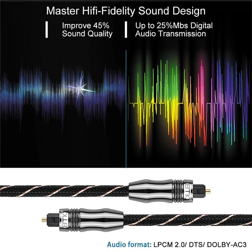 Los cables de audio óptico EMK están fabricados con materiales de alta calidad: