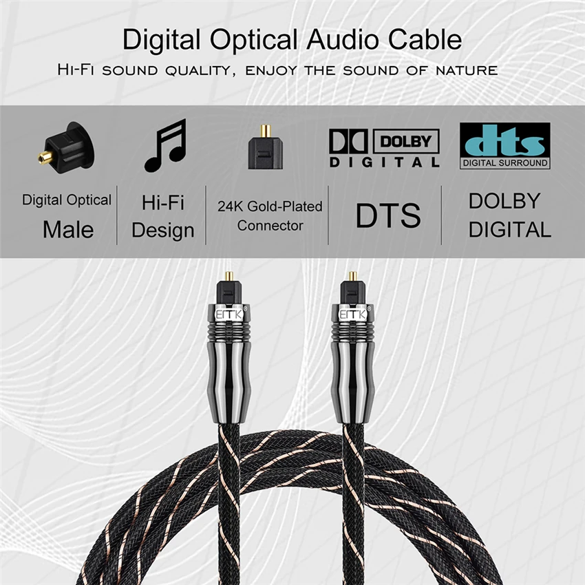 Cable de Audio óptico de sonido Digital EMK, Cable Toslink SPDIF de entrada/salida, Cable óptico de larga calidad para TV, reproductor de Blu-ray, barra de sonido 5,1