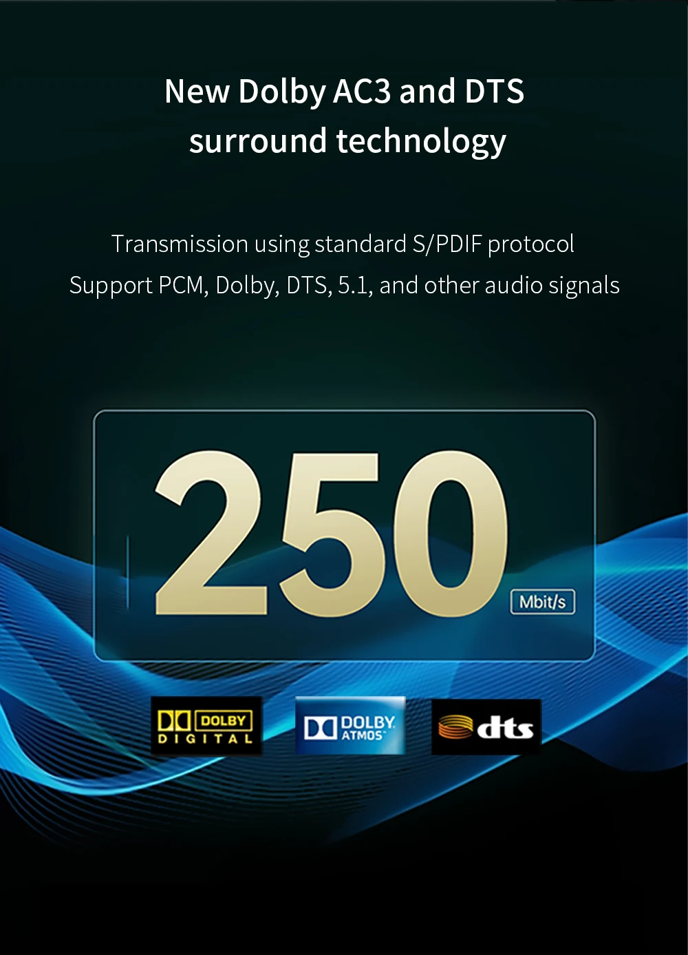 Admite PCM, Dolby, DTS, 5.1 y otras señales de audio