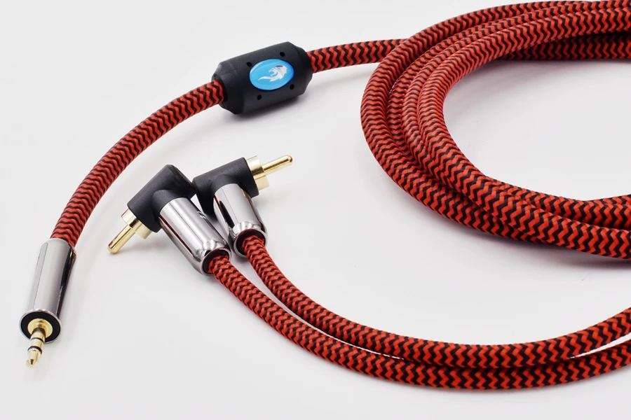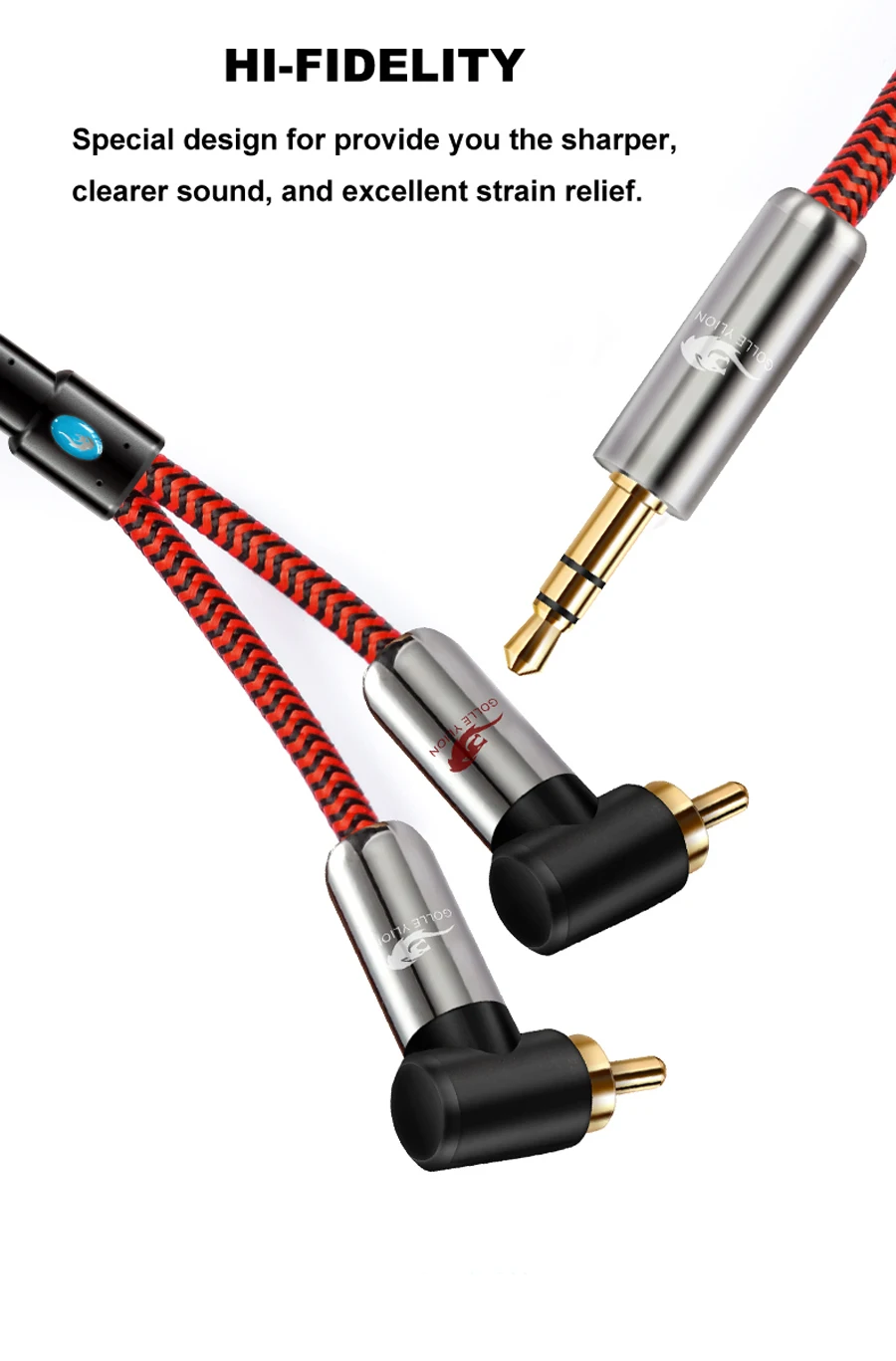 Comprar Cable de Audio prémium Mini Jack a 2 RCA de 3,5mm para PC, tableta móvil, altavoz de 3,5 a ángulo Dual, Cable RCA OFC de 1M, 2M, 3M, 5M, 8M, 10M, 12M