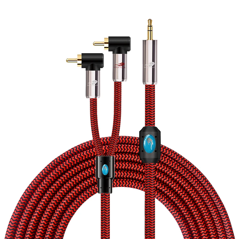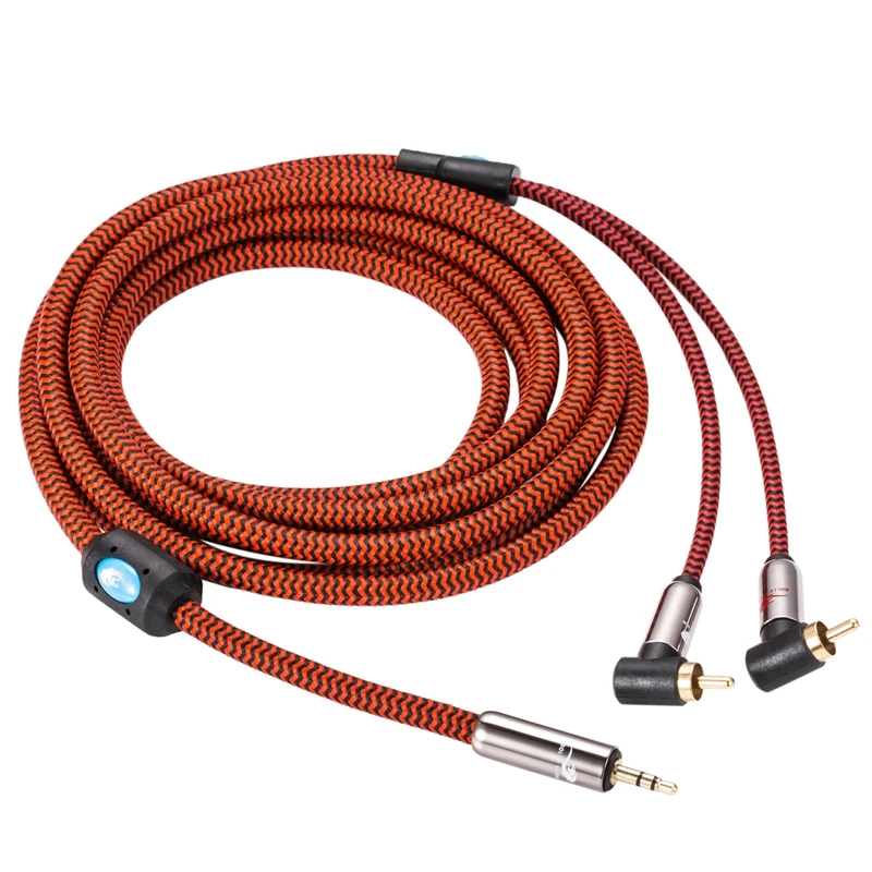 Comprar Cable de Audio prémium Mini Jack a 2 RCA de 3,5mm para PC, tableta móvil, altavoz de 3,5 a ángulo Dual, Cable RCA OFC de 1M, 2M, 3M, 5M, 8M, 10M, 12M