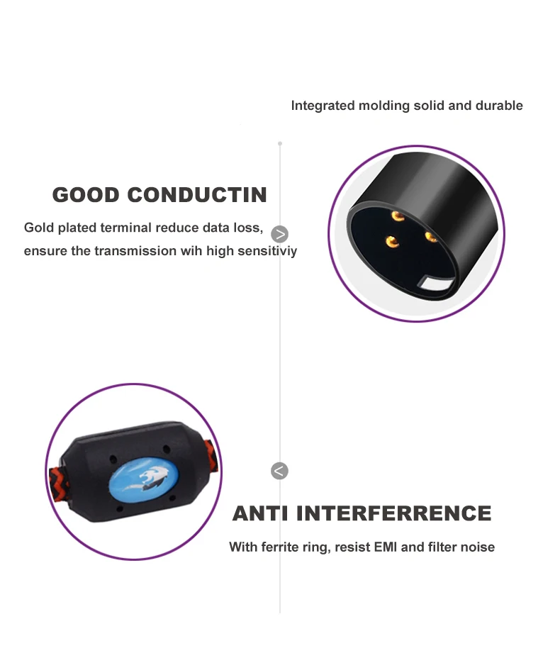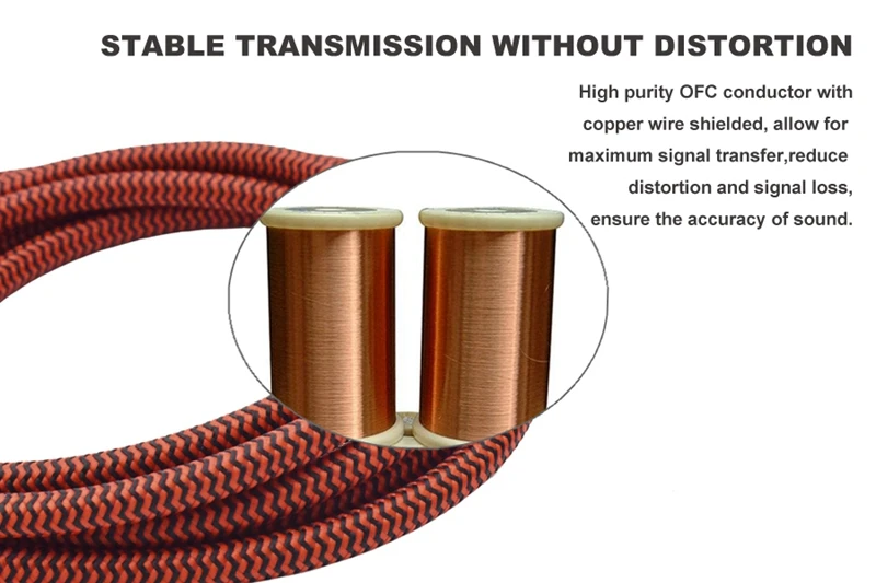 El conductor OFC de alta pureza con blindaje de alta densidad permite la máxima transferencia de señal, reduce la distorsión y la pérdida de señal, para mantener el rendimiento de su dispositivo musical.