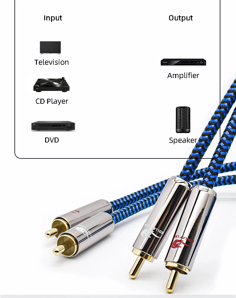 Cable de Audio RCA Dual Audiophile para amplificador, altavoz Subwoofer, DVD para coche, Cable de blindaje 2RCA a 2RCA, 1M, 2M, 3M, 5M, 8M, 10M