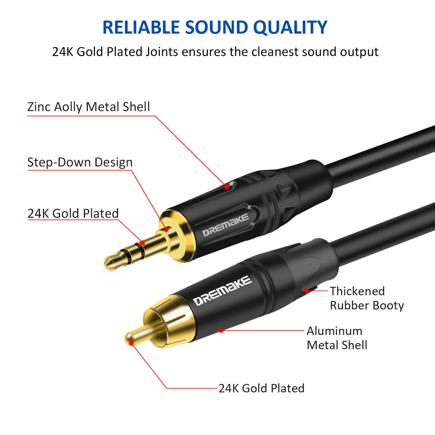 - Cable Length: 1.0M/2.0M/3.0M RCA to 1/8 Audio Cable, TRS 3.5mm Male to 2 RCA Audio Y Splitter Cable, 1/8 Stereo to 2 RCA Connector Wire Cord, RCA to 1/8 Insert Cable, Male Quarter inch Stereo to 2 RCA Male Cord for AV Receiver, Amplifier, Home Theater, HDTV