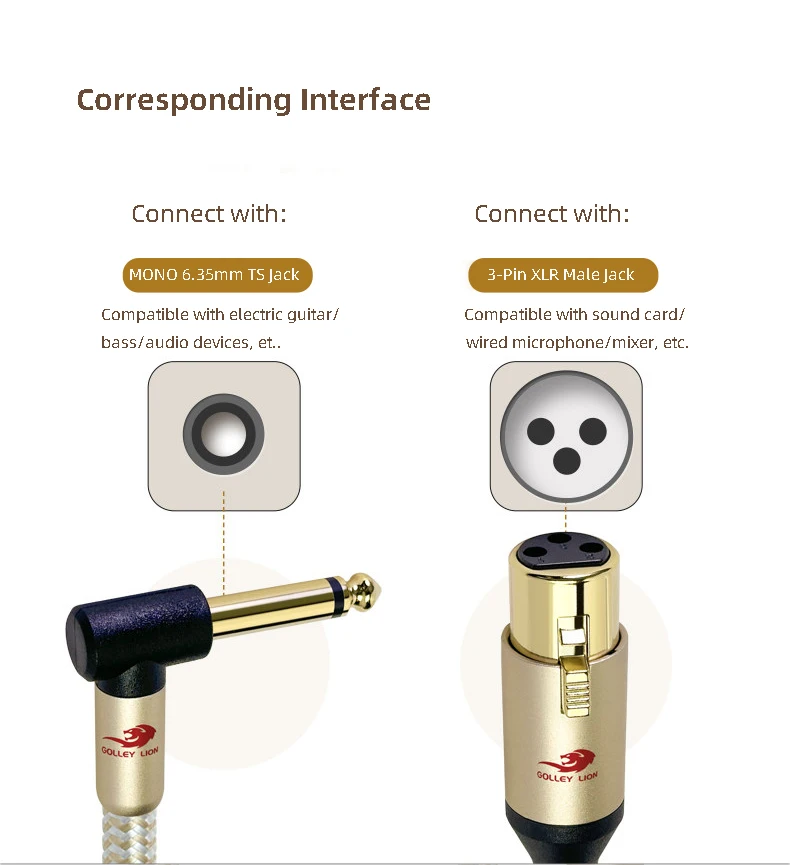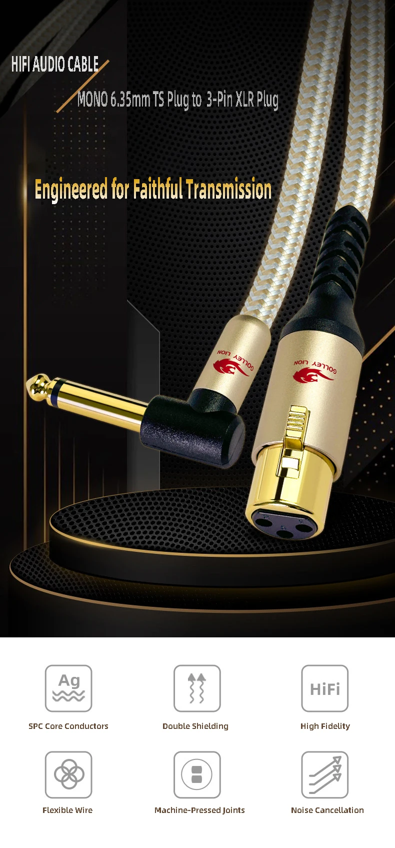 Cable de Audio SPC Premium, conector Regular hembra de 3 pines a conector TS MONO de 6,35mm para efectos de consola mezcladora, Cable de micrófono de 1M, 2M, 3M, 5M, 8M, 10M, 15M