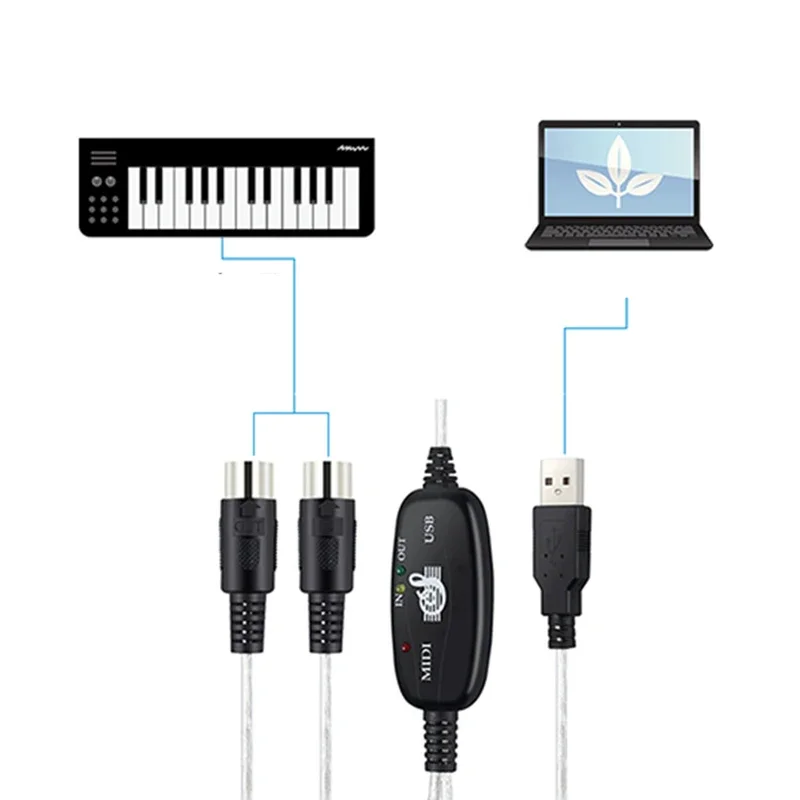 Comprar Cable de Audio de teclado a PC, convertidor de Cable MIDI USB, Cable de teclado de música, cable de interfaz MIDI IN-OUT