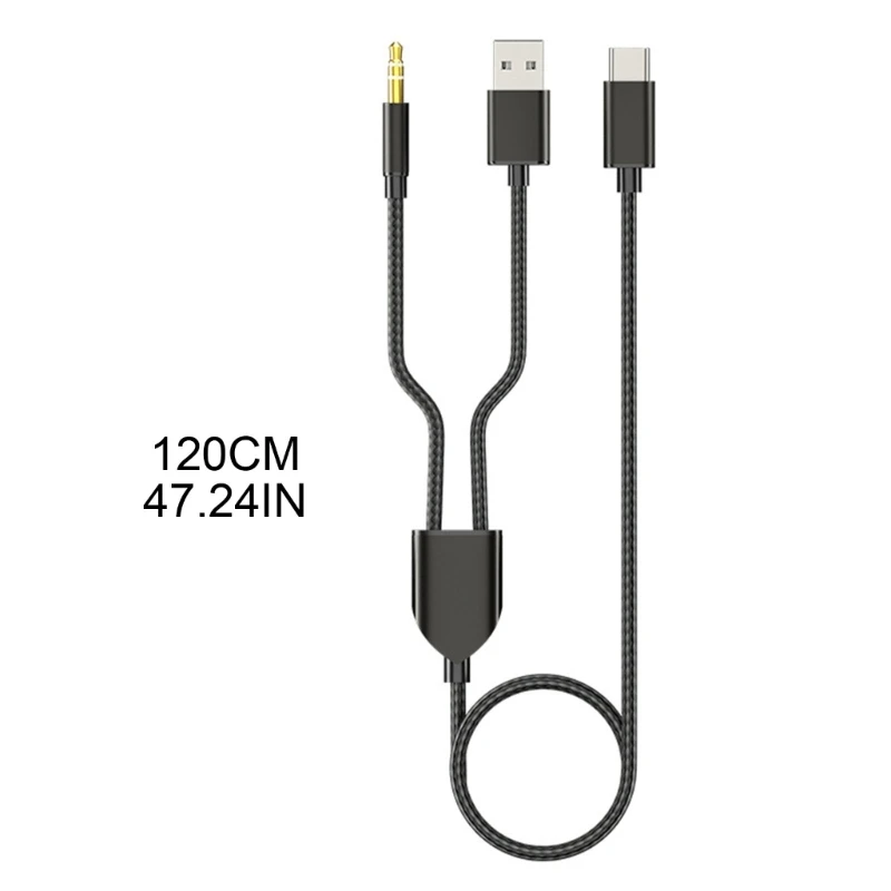 2-in-1 Type-C Car Audio Cable 1 Split 2 Type C to USB A 3.5mm AUX Cord HiFi Sound Quality for Car Speakers/Headphone
