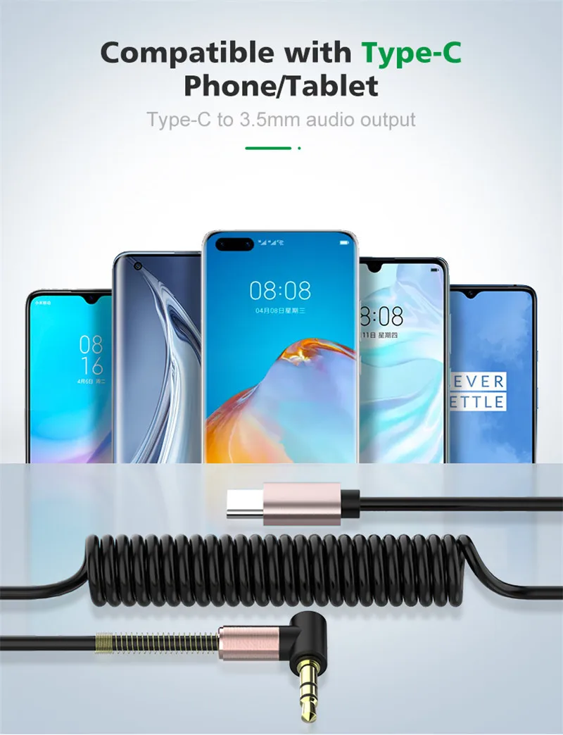 Cable de Audio tipo C/3,5 MM a 3,5 MM, adaptador de Cable auxiliar de resorte Flexible para coche para teléfono, tableta, conectar a altavoz y auriculares