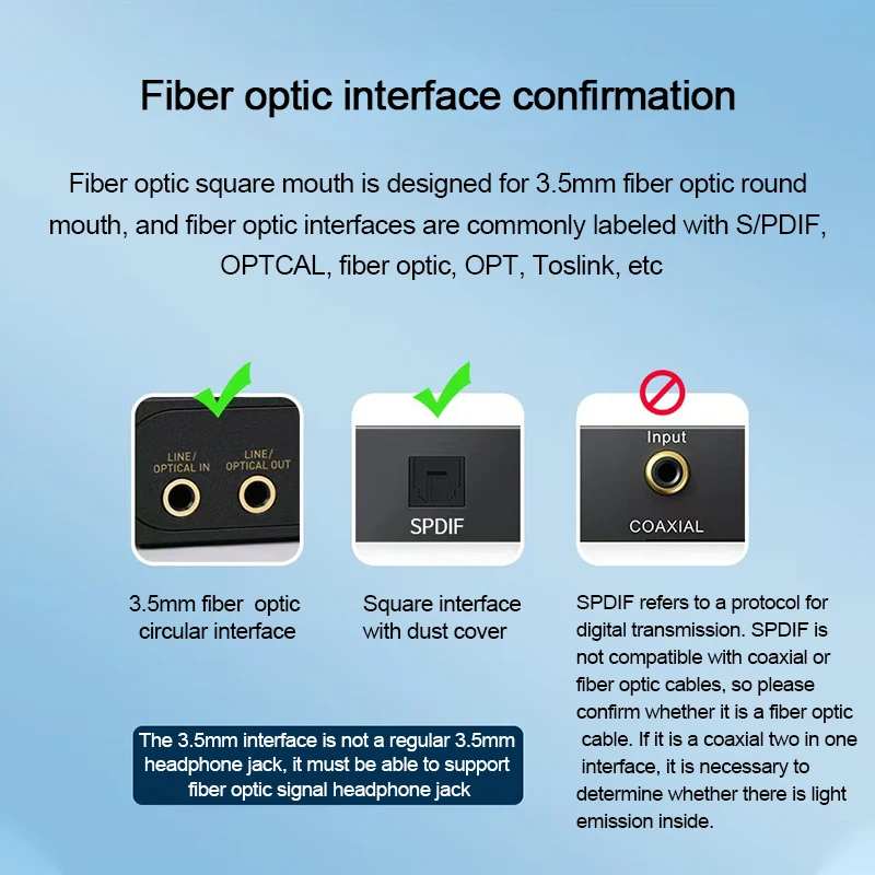 *SPDIF se refiere a un protocolo de transmisión digital.SPDIF no es compatible con cables coaxiales o de fibra óptica, así que confirme si es un cable de fibra óptica.Si se trata de una interfaz coaxial dos en uno, es necesario determinar si hay una emisión de luz en su interior.
