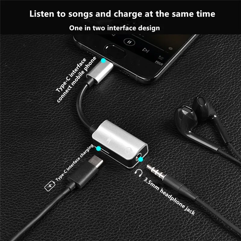 Comprar Cable de Audio USB C a 3,5mm, divisor de auriculares, convertidor de USB-C, carga electrónica de consumo, adaptador para Xiaomi mi 6, 8, note mix 2