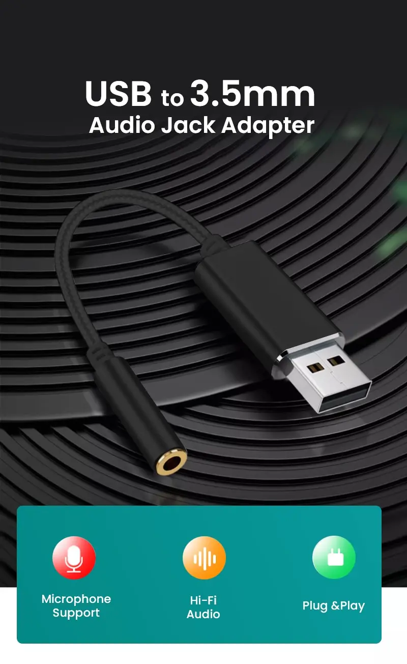 • Cable de audio USB a 3,5mm Jack :Conecte su dispositivo USB a un cable de audio Jack de 3,5mm para facilitar la transmisión de audio.