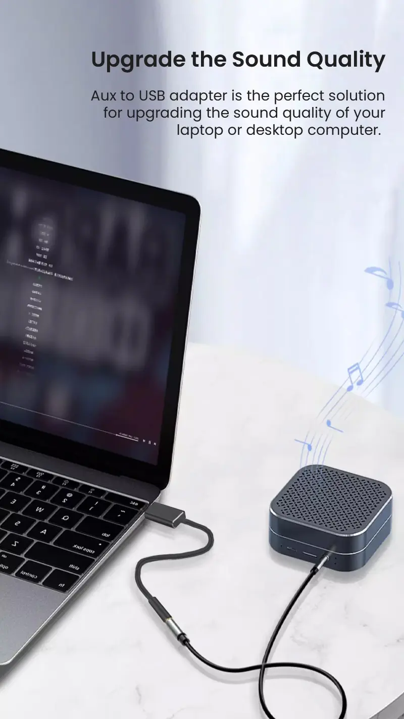 Materiales de IHigh-Calidad: Disfrute de una experiencia auditiva superior con nuestro adaptador USB a aux con un núcleo de cobre estañado de alta calidad incorporado y cables trenzados de alta densidad para aislamiento de doble capa. Este diseño duradero garantiza una eficiente decodificación, optimización y amplificación de la señal de sonido, lo que resulta en un audio más claro.