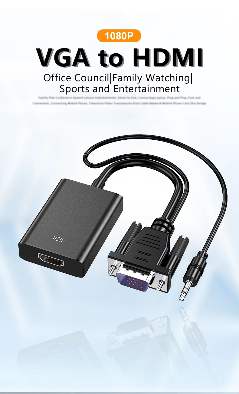 1. Un vídeo analógico VGA + entrada de señal de audio analógica; salida de señal digital HDMI estándar