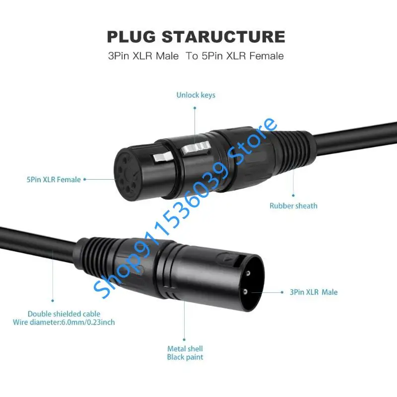 Características:OOTDTYExperimente el control de música con el cable adaptador DMX512 macho de 3 pines a hembra de 5 pines, para configuraciones de escenario profesionales.