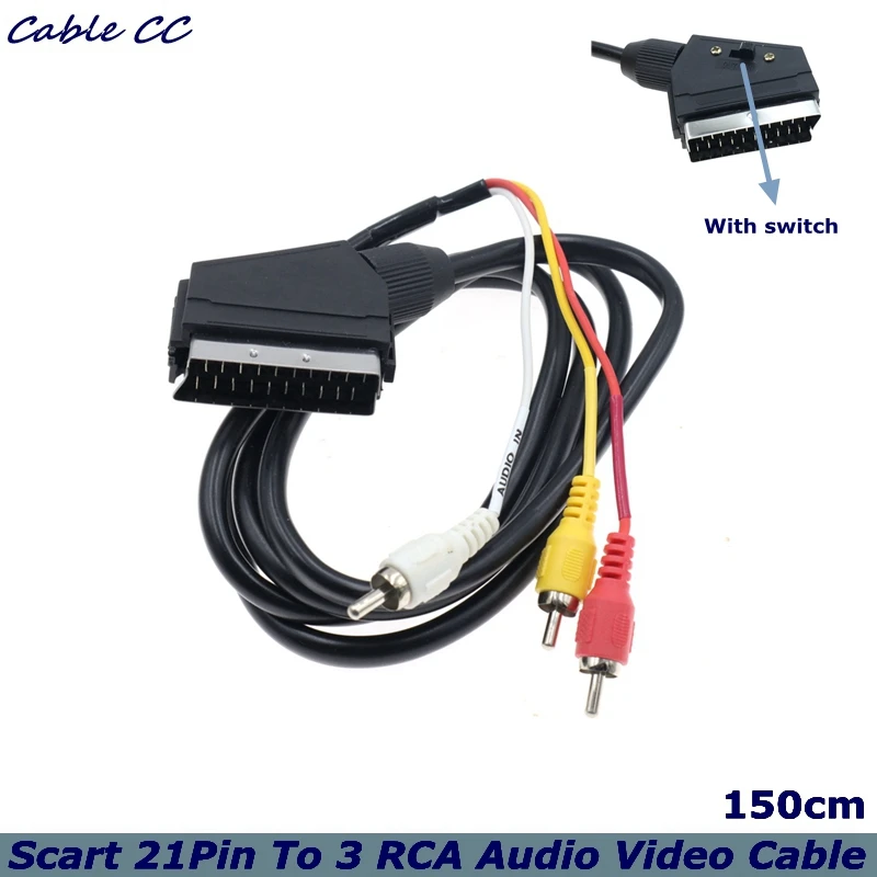 Comprar Cable de Audio y vídeo RGB Scart de 1,5 m, 21 pines a 3 RCA, para NES, 3 X FCS Triple, Phono compuesto, estándar europeo