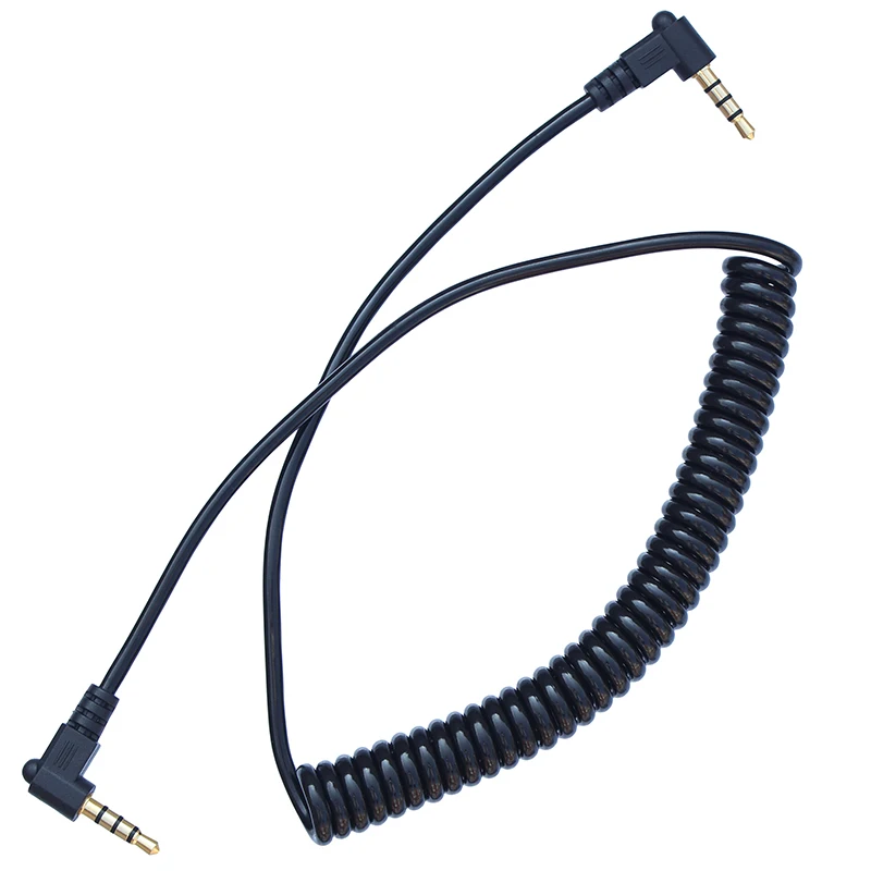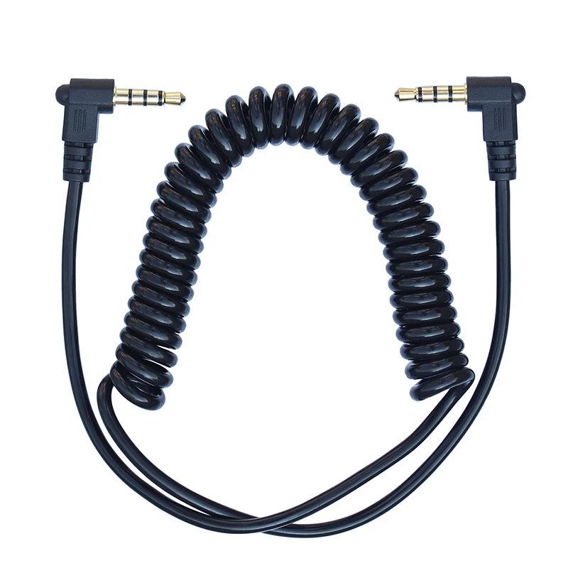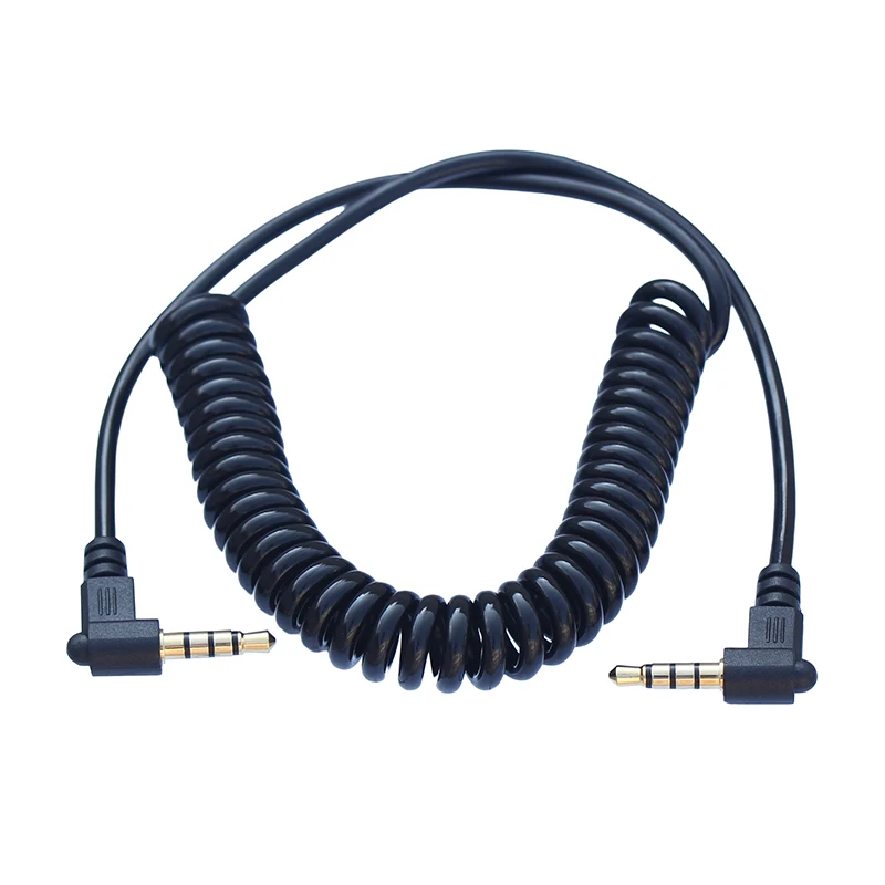 Comprar Cable auxiliar de 4 polos retráctil con resorte TRRS a TRRS de 3,5 mm en ángulo recto doble Audio estéreo macho a macho
