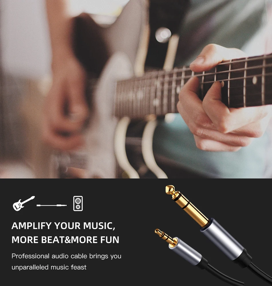 Cable auxiliar adaptador de Audio de 3,5mm a 6,35mm para teléfono móvil, amplificador de ordenador, altavoces, conector 3,5 a conector 6,5, Cable de Audio macho