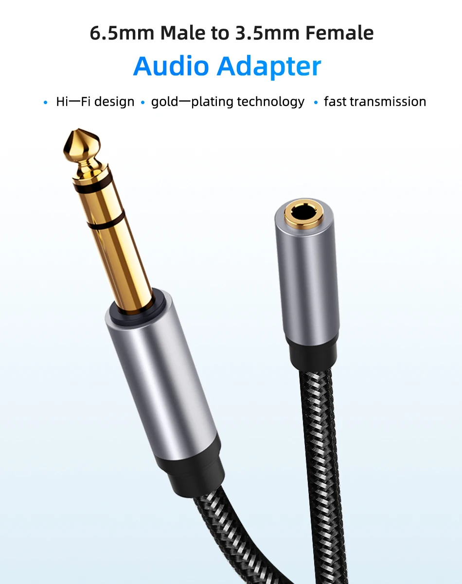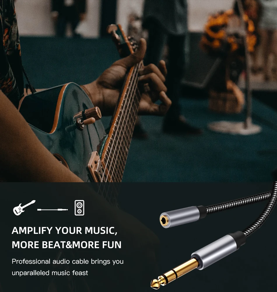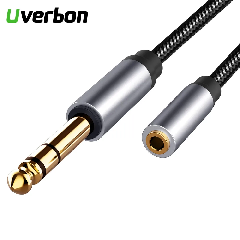 Comprar Cable auxiliar de Audio macho a hembra de 6,5mm, adaptador de grabación de guitarra con micrófono, convertidor chapado en oro de 3,5/6,5mm, 3,5mm