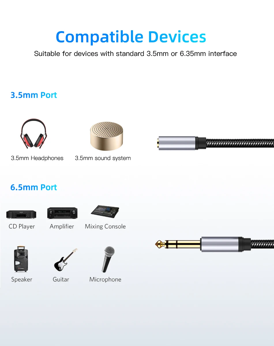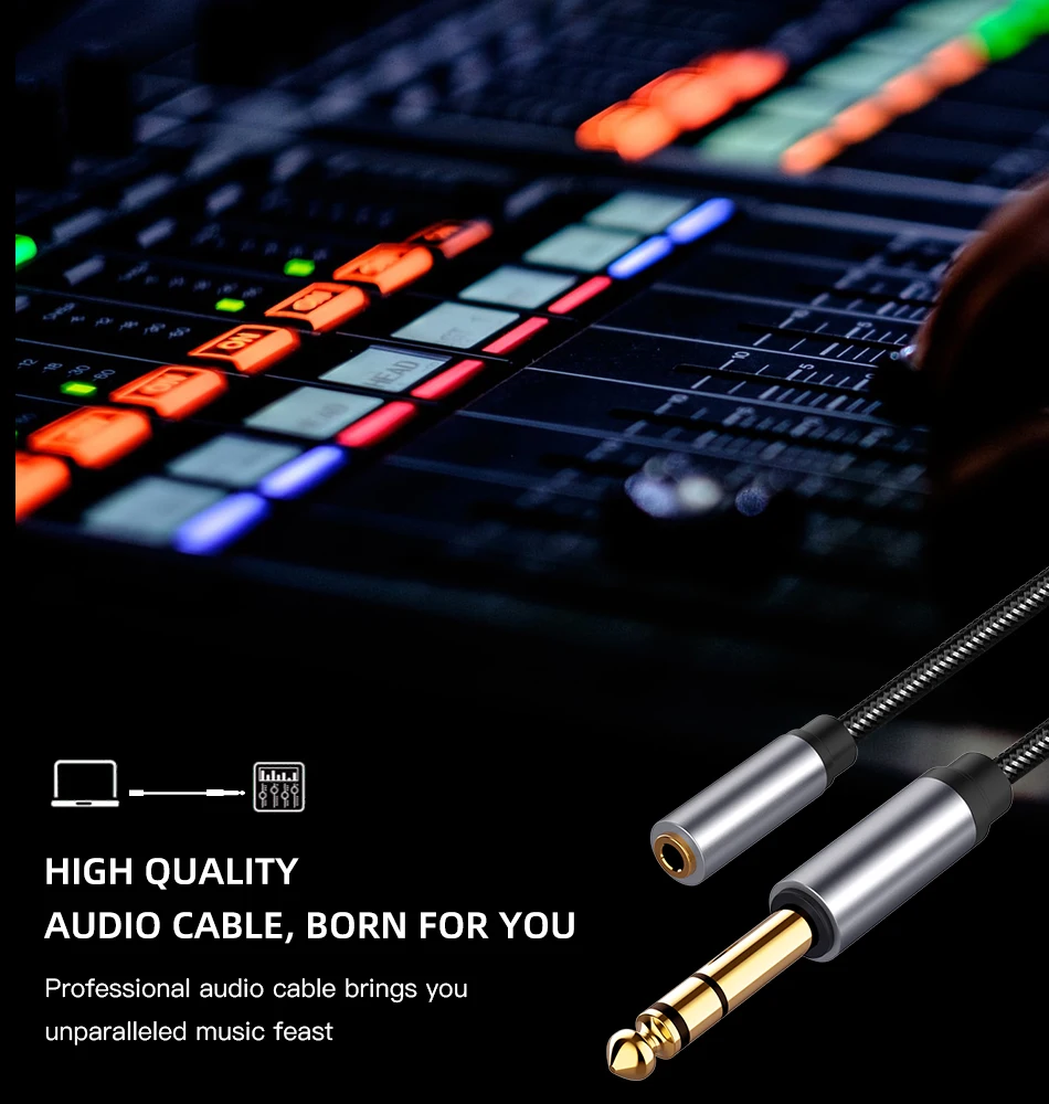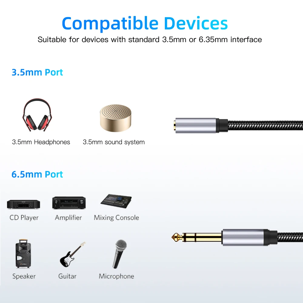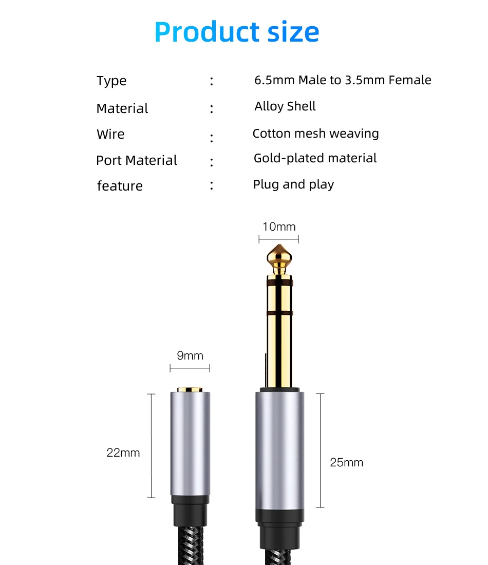 Comprar Cable auxiliar de Audio macho a hembra de 6,5mm, adaptador de grabación de guitarra con micrófono, convertidor chapado en oro de 3,5/6,5mm, 3,5mm