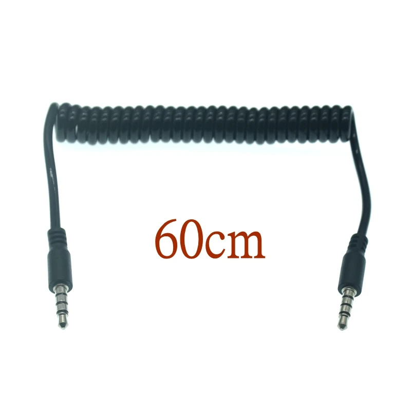 Male To Male Earphones Jack Audio Cable Black 3/10TF 4-Pole Spring Coiled 3.5mm Aux Cable W/ Mic Audio Auxiliary Cord