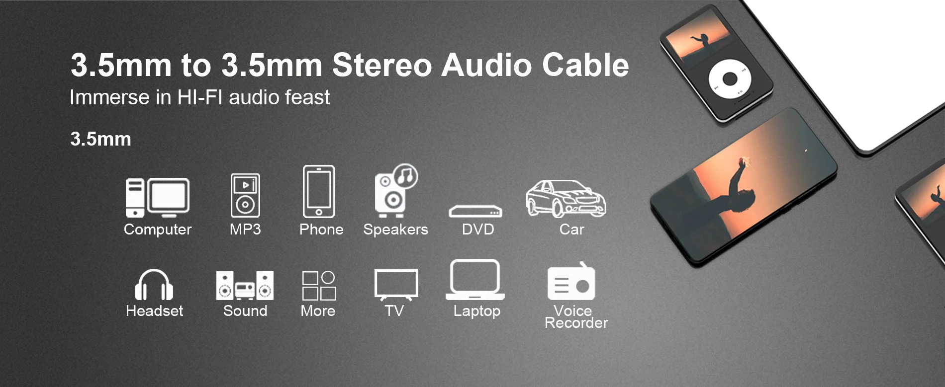 Ultra duradero y sin enredos⭐Con una vida útil de curvatura ultraduradera de más de 15000 veces más larga que los cables de audio originales, conéctese sin problemas a los teléfonos inteligentes y otros dispositivos con enchufe auxiliar.