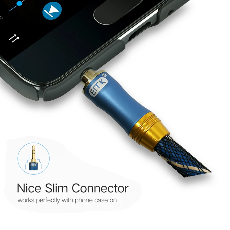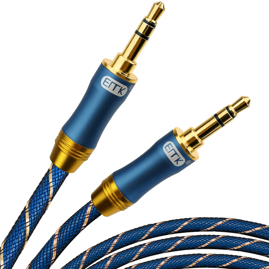 Características y especificaciones:Características principales:• Máxima compatibilidad con todos los dispositivos con puertos auxiliares estándar de 3,5mm• Cable de audio auxiliar EMK Premium de 3,5mm, de macho a macho• Cobre estañado sin oxígeno (99.99%), transparente, multicanal, entrada/salida de audio auxiliar de 3,5mm a través de un cable ligero y flexible• Chaqueta trenzada de nailon duradera OD5.5 mm• Contactos chapados en oro de 24K (resistentes a la corrosión)• Resistente a la corrosión que se ajusta exactamente a conectores metálicos completos y tubos de amortiguación para transferencia de señal analógica• Alta flexibilidad (evita la alta presión en los puertos auxiliares)• Certificación CE y FCCCable auxiliar de 3,5mm macho a macho