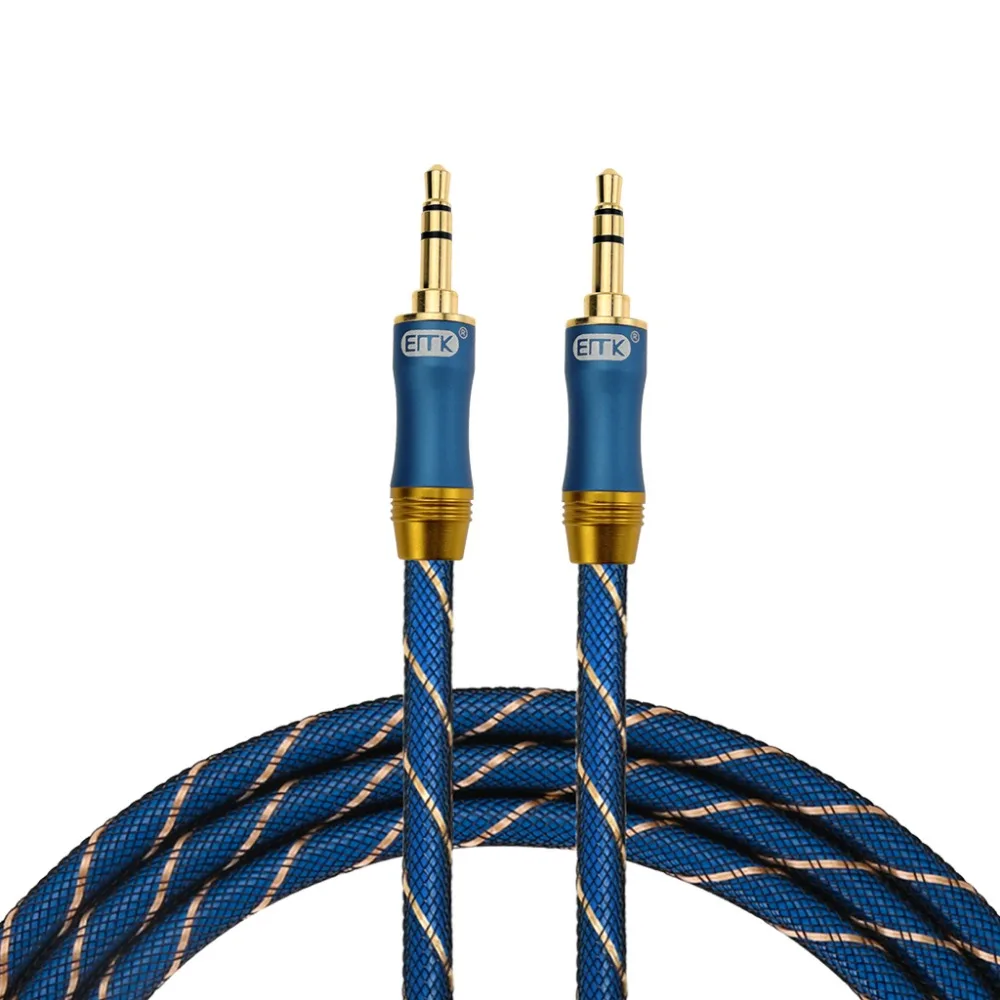 Características y especificaciones:Características principales:• Máxima compatibilidad con todos los dispositivos con puertos auxiliares estándar de 3,5mm• Cable de audio auxiliar EMK Premium de 3,5mm, de macho a macho• Cobre estañado sin oxígeno (99.99%), transparente, multicanal, entrada/salida de audio auxiliar de 3,5mm a través de un cable ligero y flexible• Chaqueta trenzada de nailon duradera OD5.5 mm• Contactos chapados en oro de 24K (resistentes a la corrosión)• Resistente a la corrosión que se ajusta exactamente a conectores metálicos completos y tubos de amortiguación para transferencia de señal analógica• Alta flexibilidad (evita la alta presión en los puertos auxiliares)• Certificación CE y FCCCable auxiliar de 3,5mm macho a macho