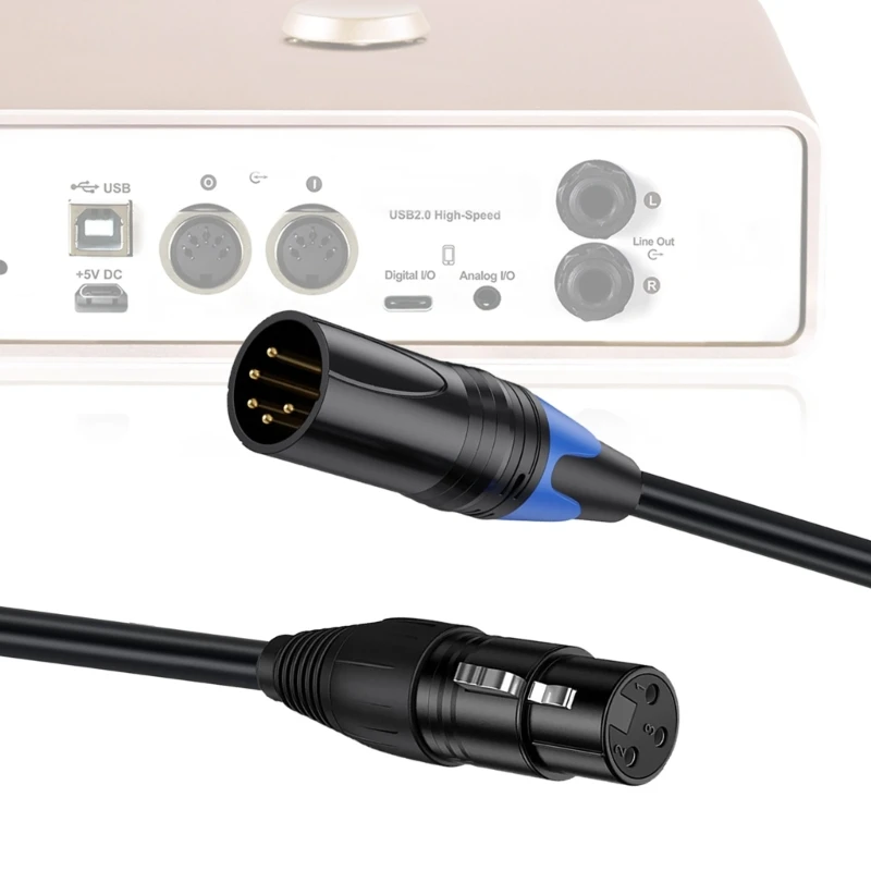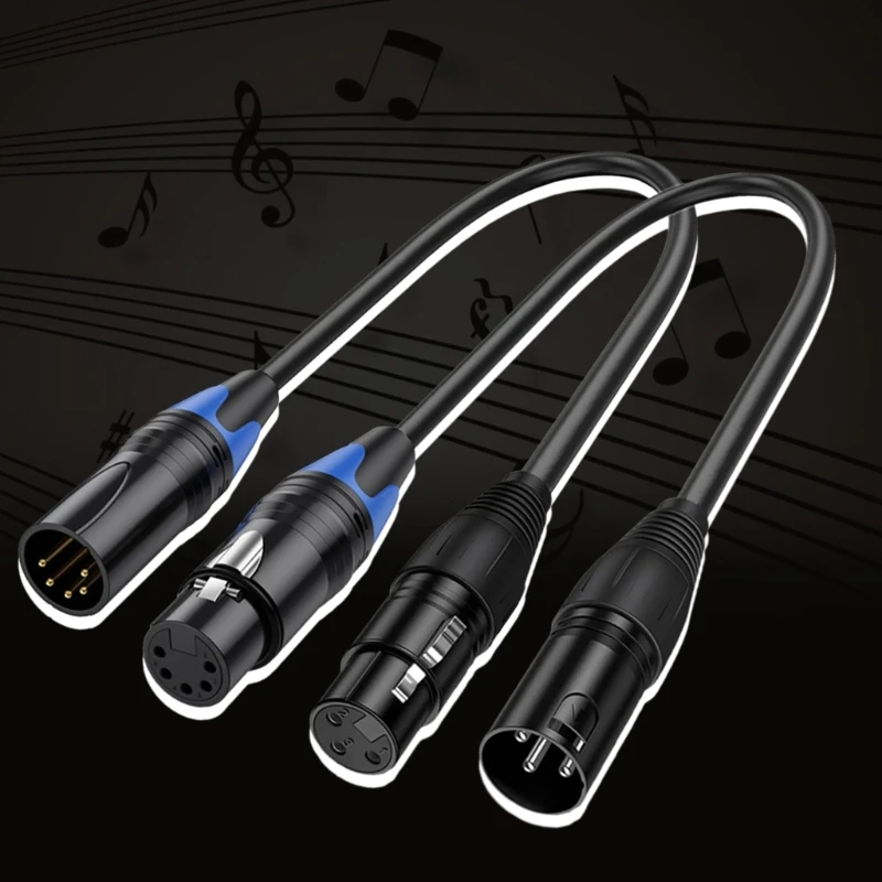 Características:OotdtyCable de audio macho de 3 pines a hembra de 5 pines o hembra de 3 pines a macho de 5 pines, utilizado para micrófono, conversión de iluminación de escenario DMX512,