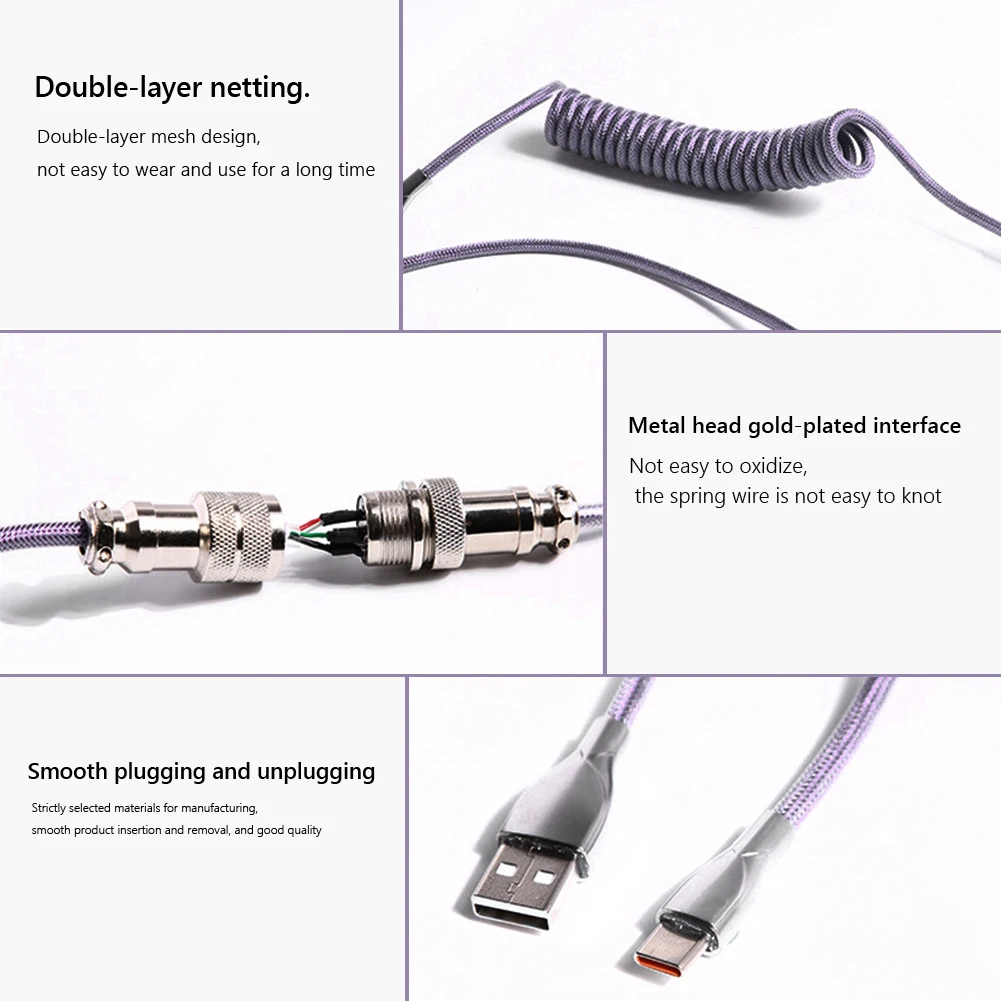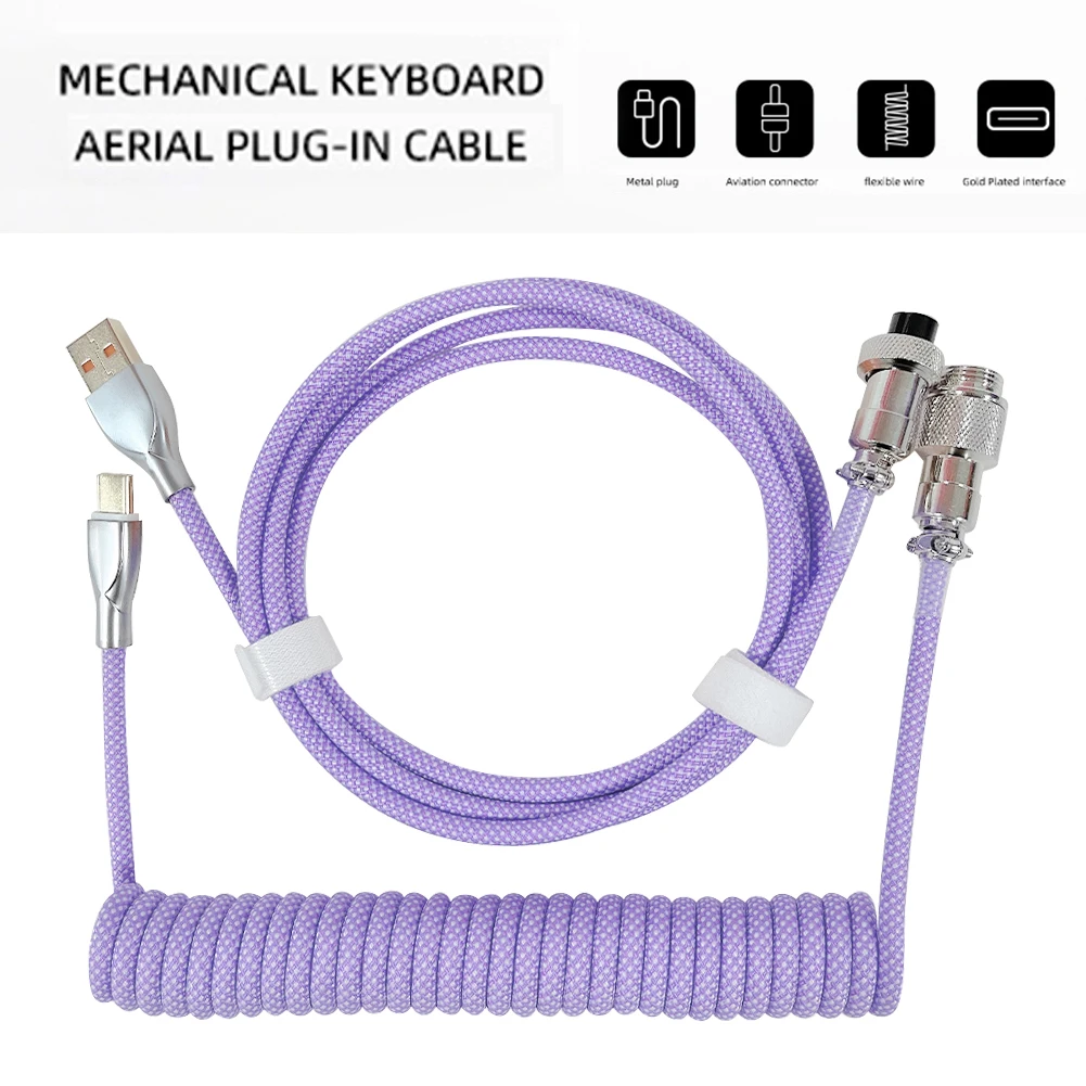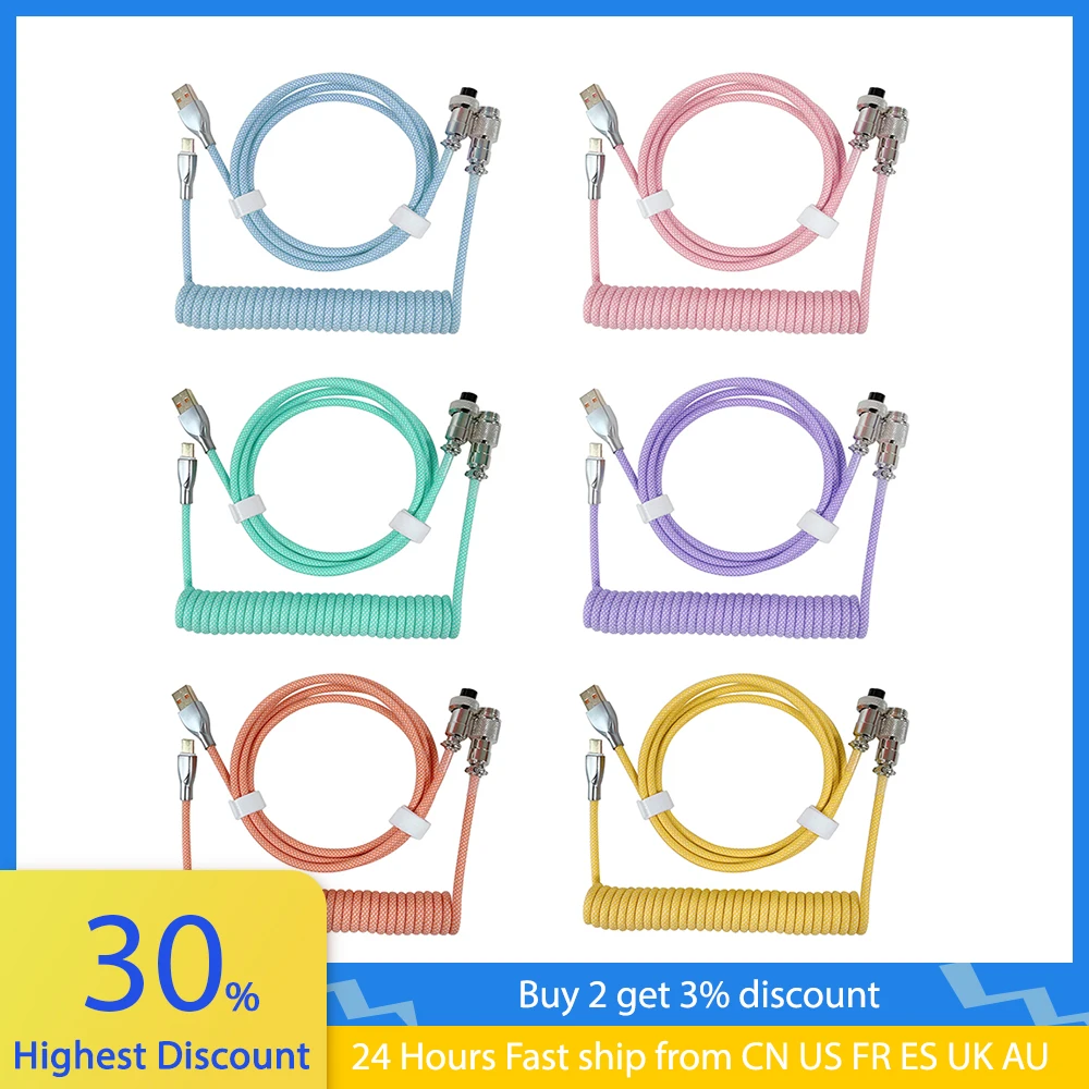 Comprar Cable de Aviador enrollado 2 en 1 Tipo C a Cable USB para teclado mecánico, Conector de aviación, Paracord en espiral