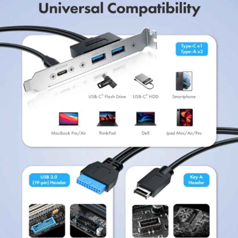【Conveniencia】Fácil instalación y enorme expansión para la carcasa de su PC.Agrega puertos rápidamente a través de la ranura Type-E y USB3.0 disponible en la placa base para conectar una variedad de dispositivos USB externos.Totalmente plug and play y no requiere controlador (asegúrese de que su placa base tenga ambos cabezales antes de comprar, algunas placas base antiguas no tienen USB3 de 20 pines).Conector 2 Key-A tipo E y se sugiere instalarlo con un adaptador de panel frontal USB que convierte USB 3.0 encabezado en un USB3.2 conectores tipo E Key-A de 20 pines o una tarjeta PCIe tipo E que convierte la ranura PCIe en un USB3.2 Conector tipo E)