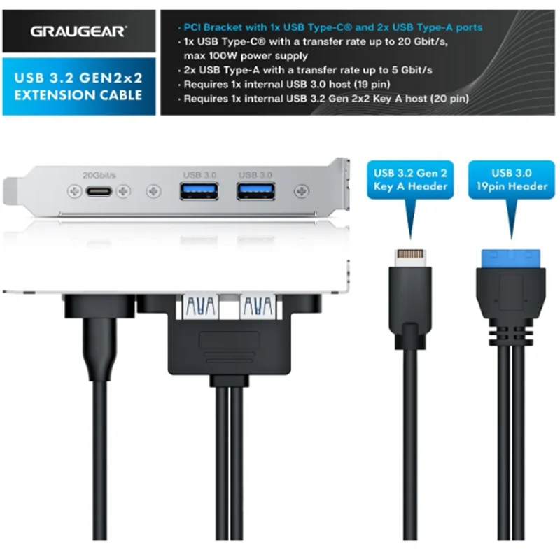 【Contenido del paquete】Cable de extensión GRAUGEAR USB tipo E a tipo C y tipo A con soporte PCI, tarjeta de garantía, manual de usuario y servicio al cliente amigable