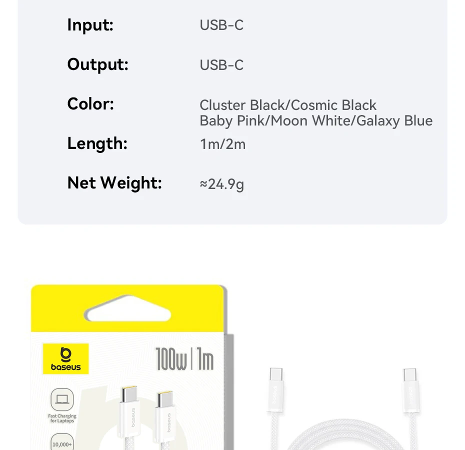 Comprar Cable Baseus de 100W para iPhone 15 16 Pro Max tipo C a tipo C PD Cable de carga rápida para Macbook Pro para iPad Cable PD para móvil