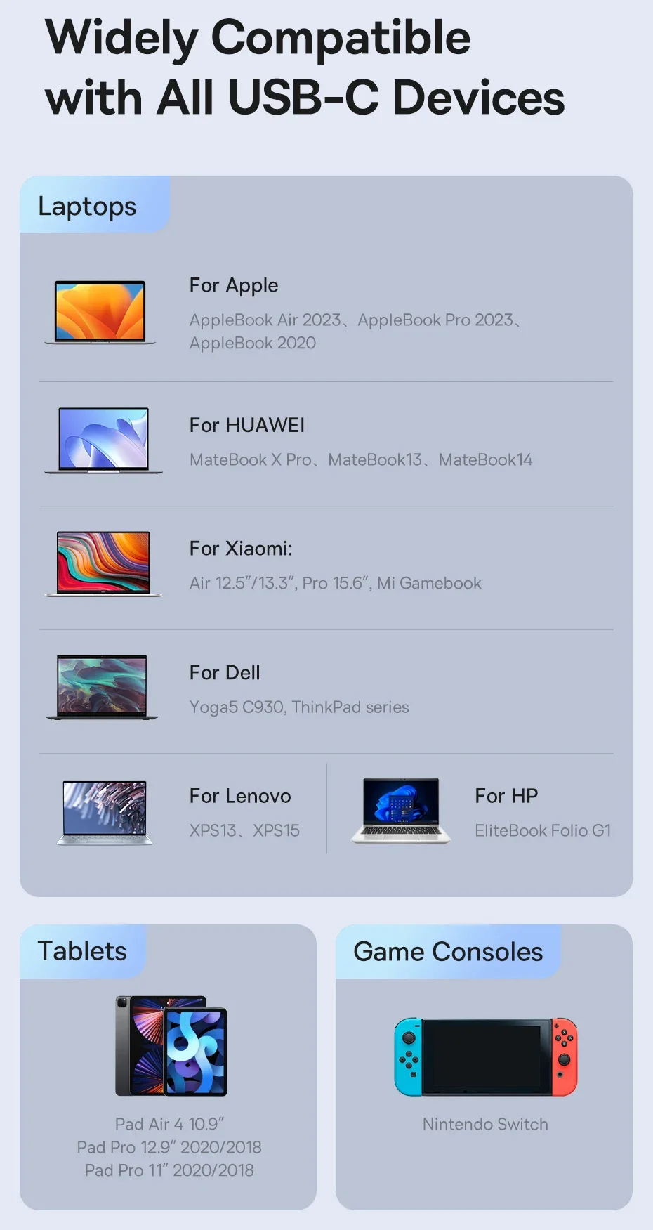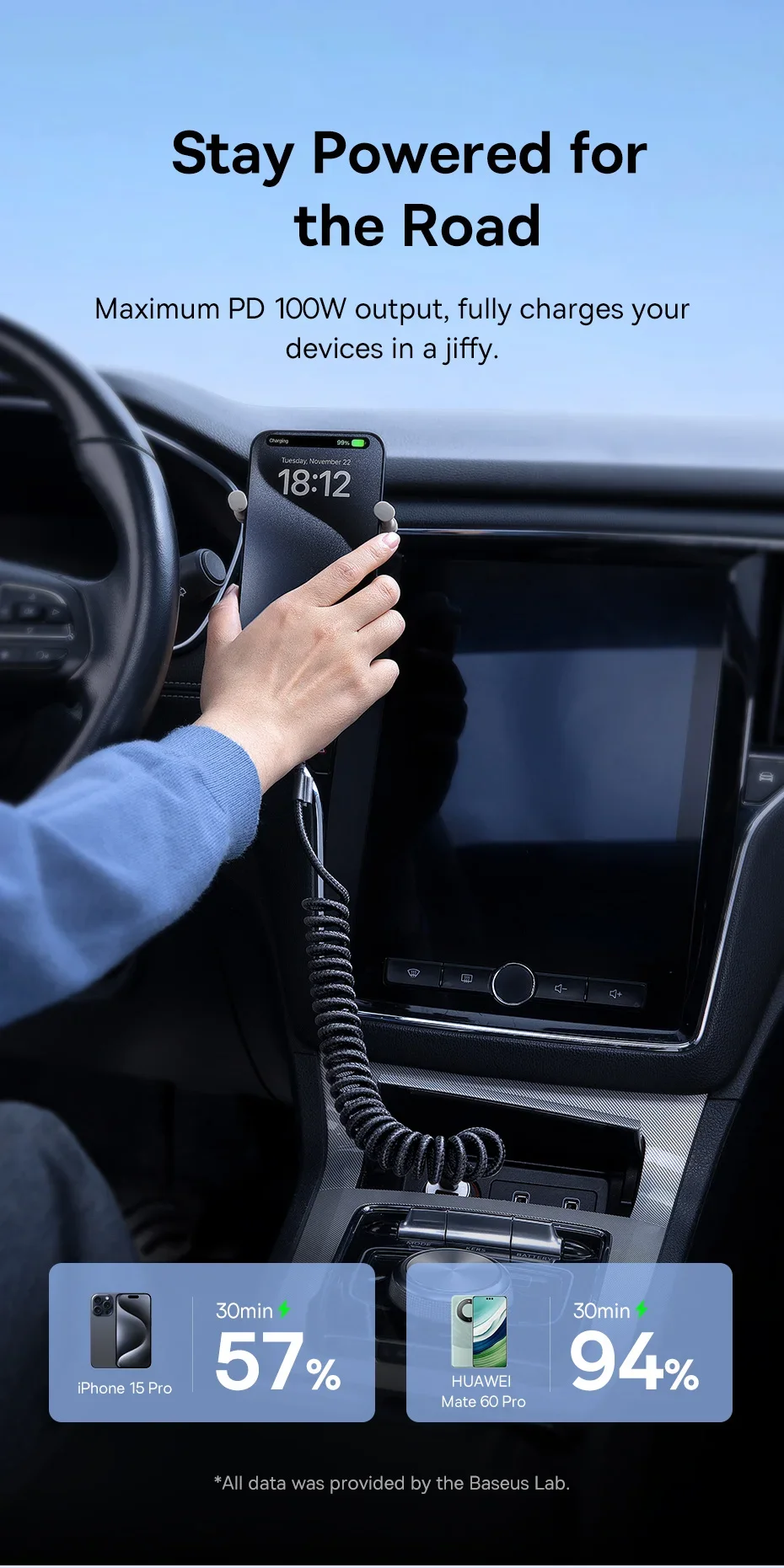 Salida máxima PD 100W, carga completamente tus dispositivos en un instante.