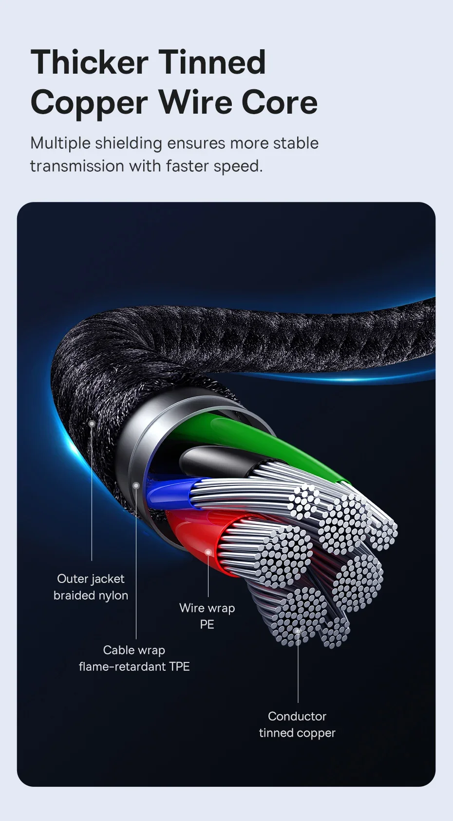 El blindaje múltiple garantiza una transmisión más estable con una velocidad más rápida.