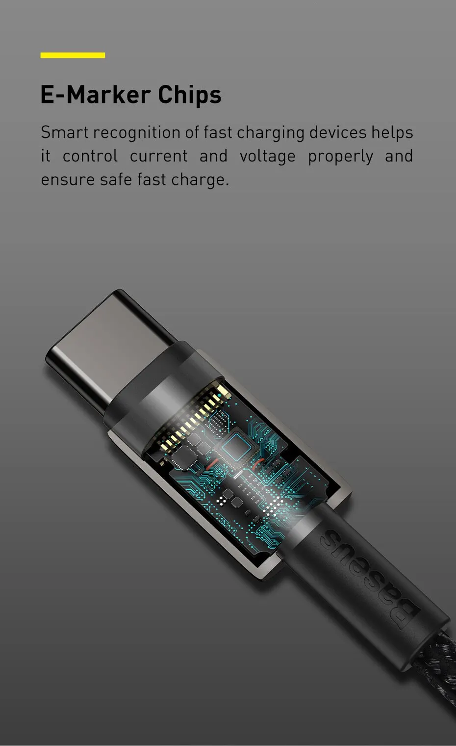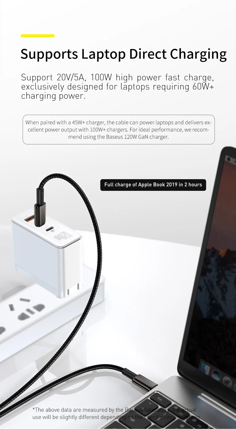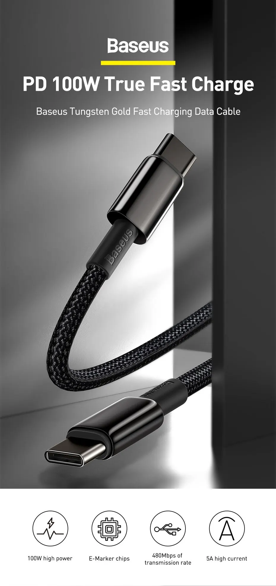 • Carga rápida:Cargue sus dispositivos rápidamente con el Cable Baseus 100W Tipo C.