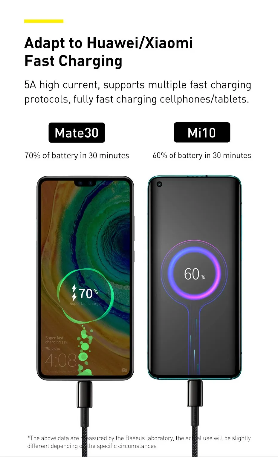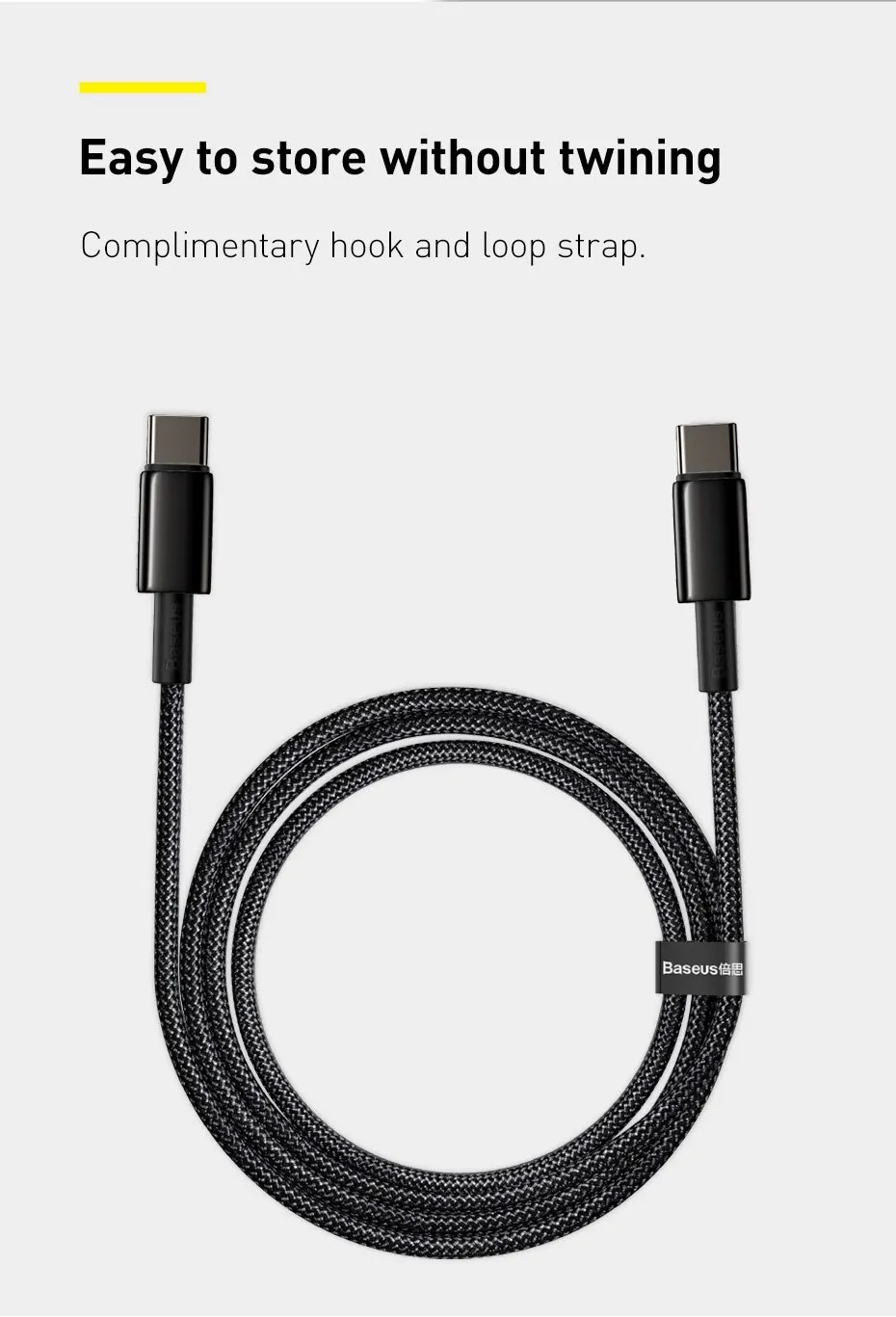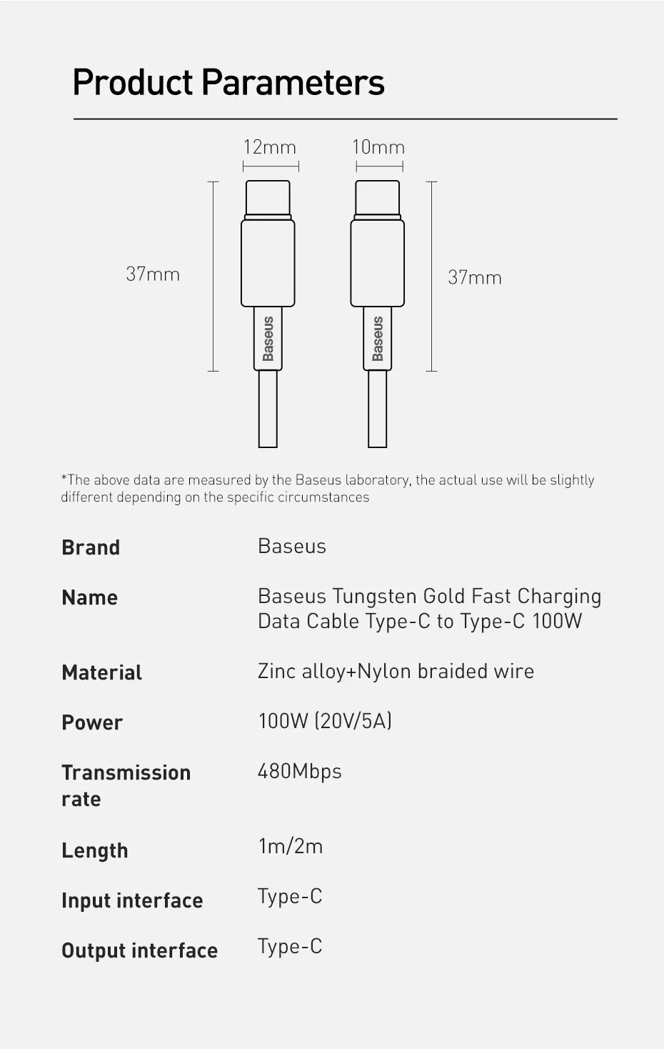 • Carga rápida:Cargue sus dispositivos rápidamente con el Cable Baseus 100W Tipo C.