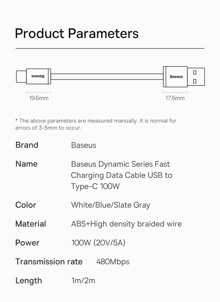 • Carga rápida:Cargue sus dispositivos rápidamente con la función de carga rápida del cable Baseus 100W USB A a USB C.