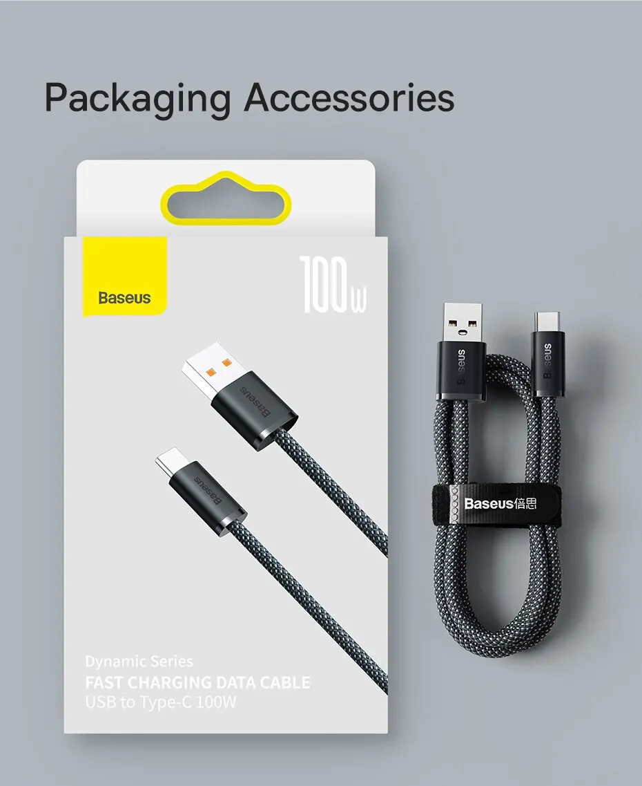 • Carga rápida:Cargue sus dispositivos rápidamente con la función de carga rápida del cable Baseus 100W USB A a USB C.