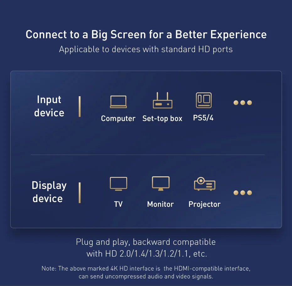 Los conectores adoptan tecnología chapada en oro, que previene eficazmente la oxidación y garantiza una transmisión estable de imágenes.