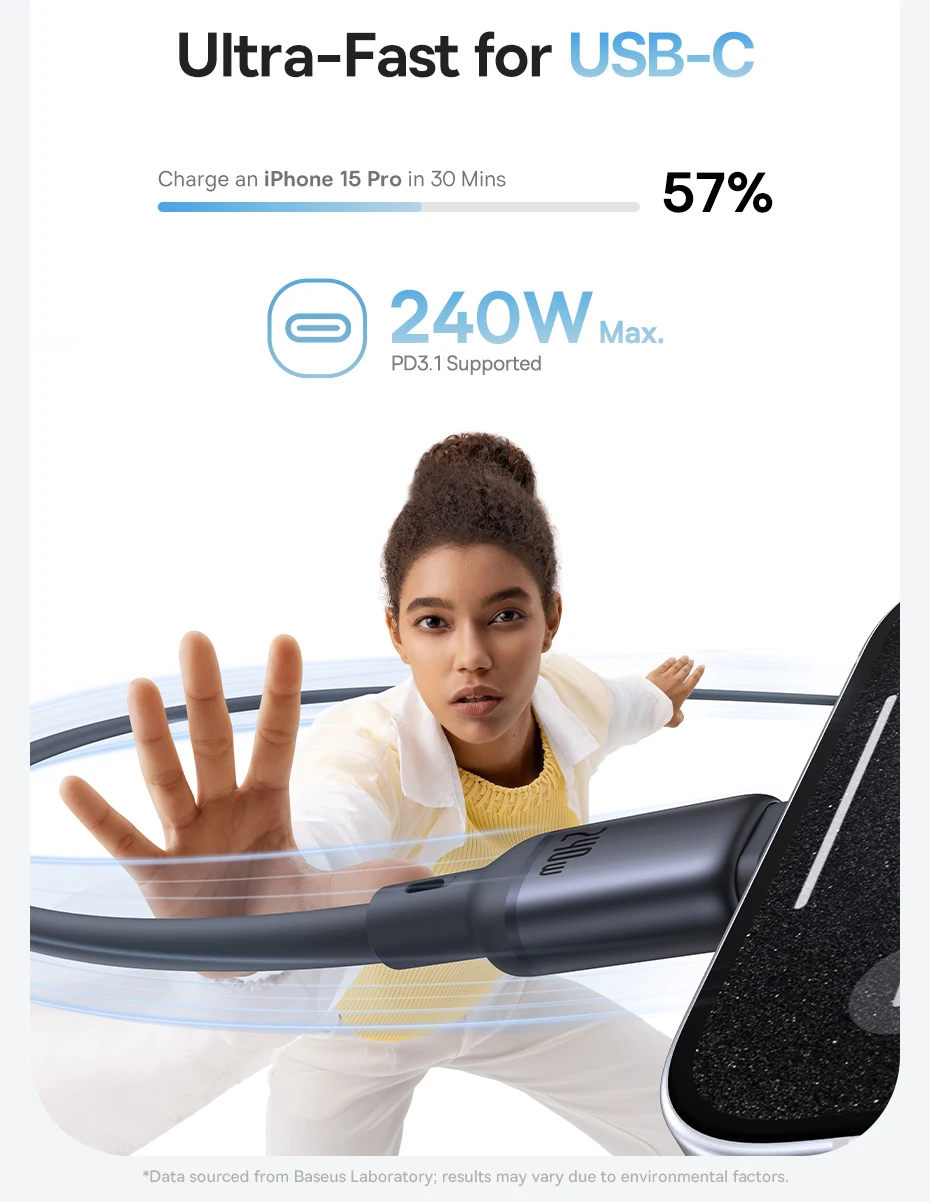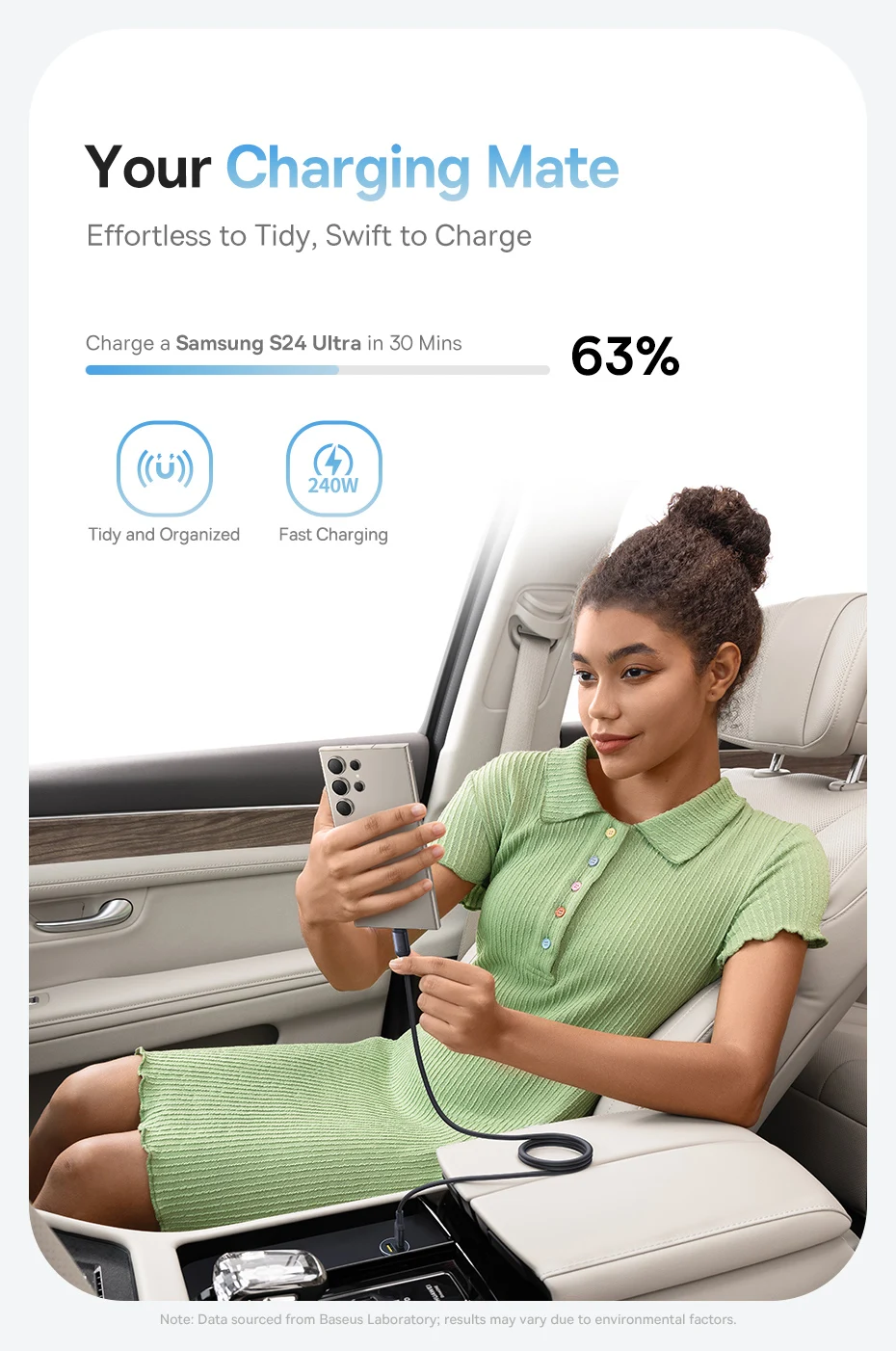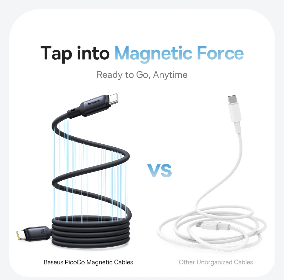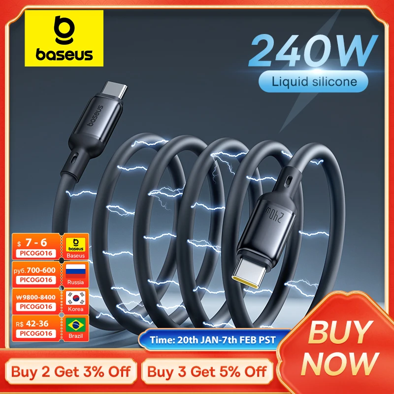 Comprar Cable Baseus Picogo USB C de 240W para iPhone 16 15, Cable magnético de carga rápida tipo C para Macbook, Cable de silicona líquida para Samsung