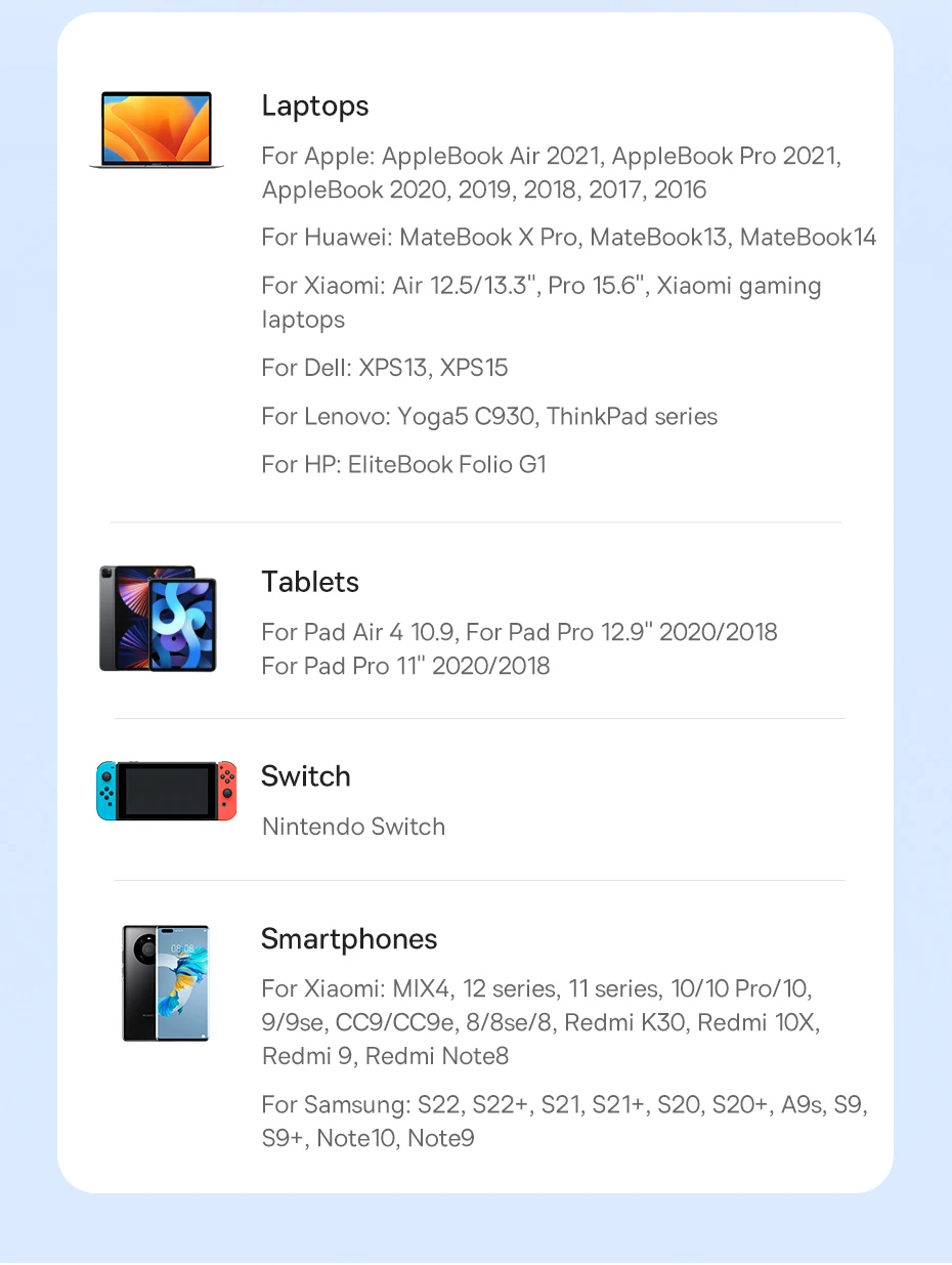 Admite carga rápida de 100 W para portátiles, tabletas y teléfonos inteligentes