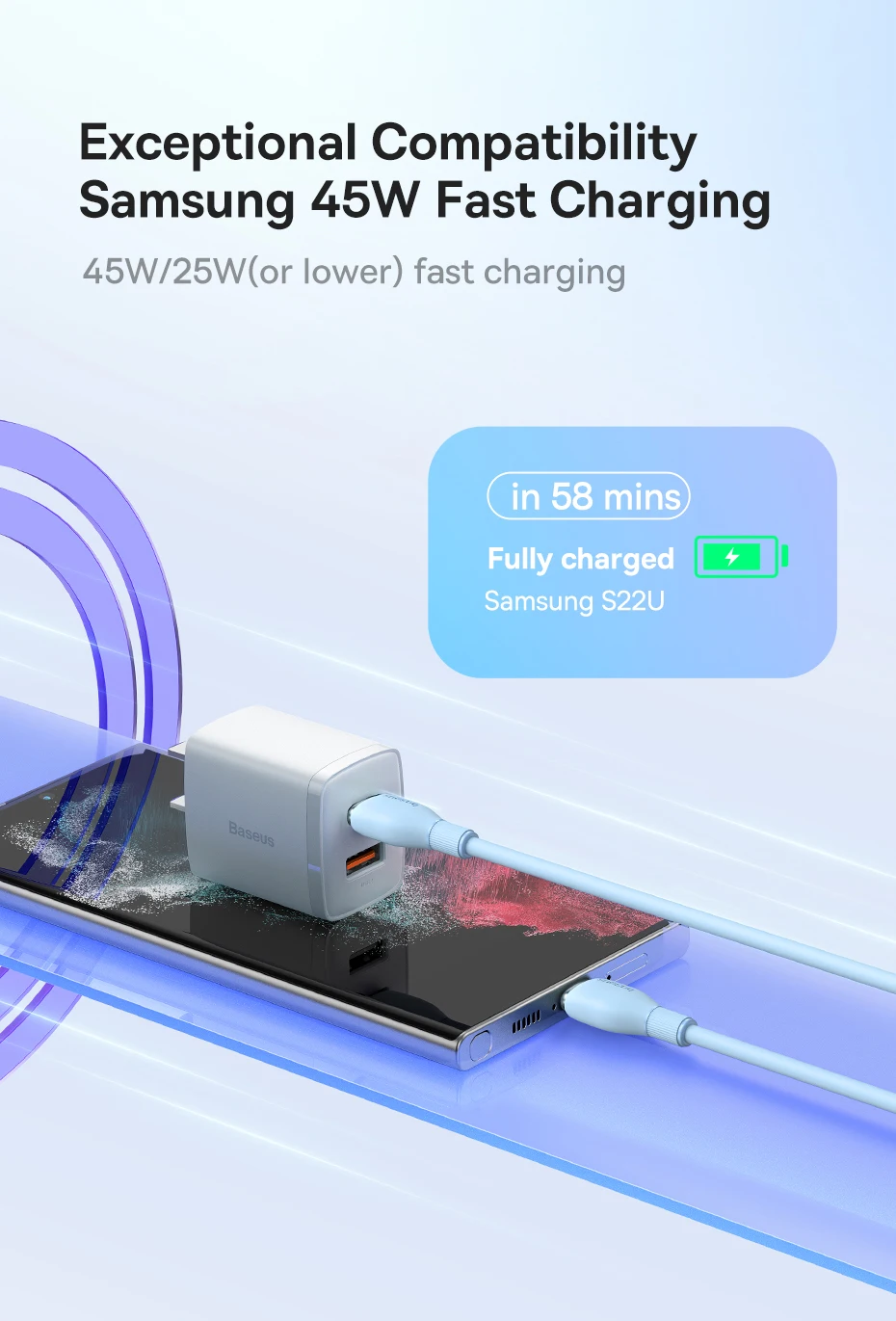 Compatibilidad excepcional para carga rápida Samsung de 45W