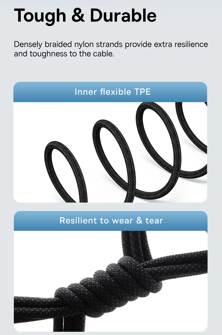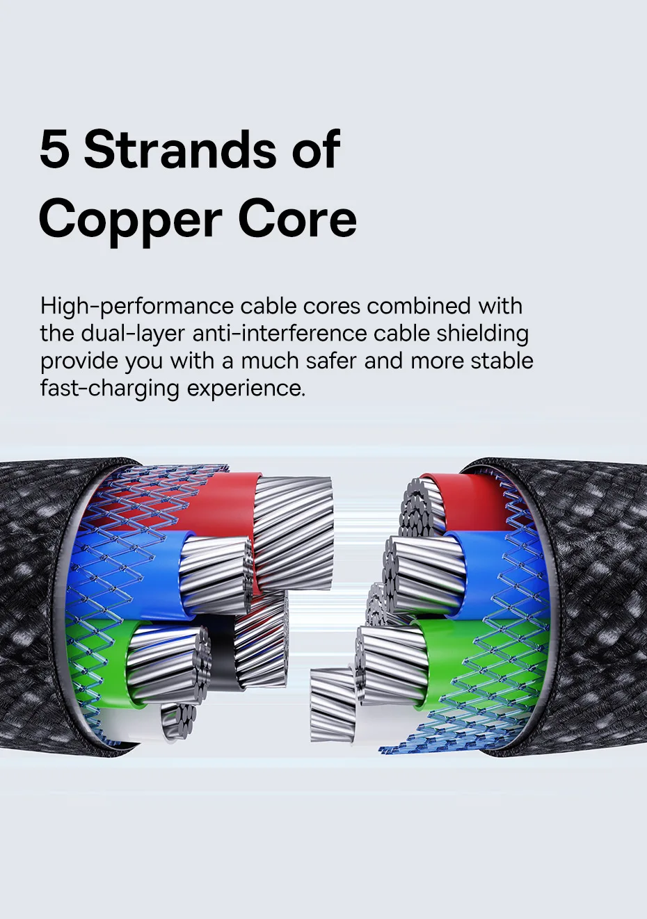 Los núcleos de cable de alto rendimiento combinados con el blindaje de cable antiinterferencias de doble capa le brindan una experiencia de carga rápida mucho más segura y estable.
