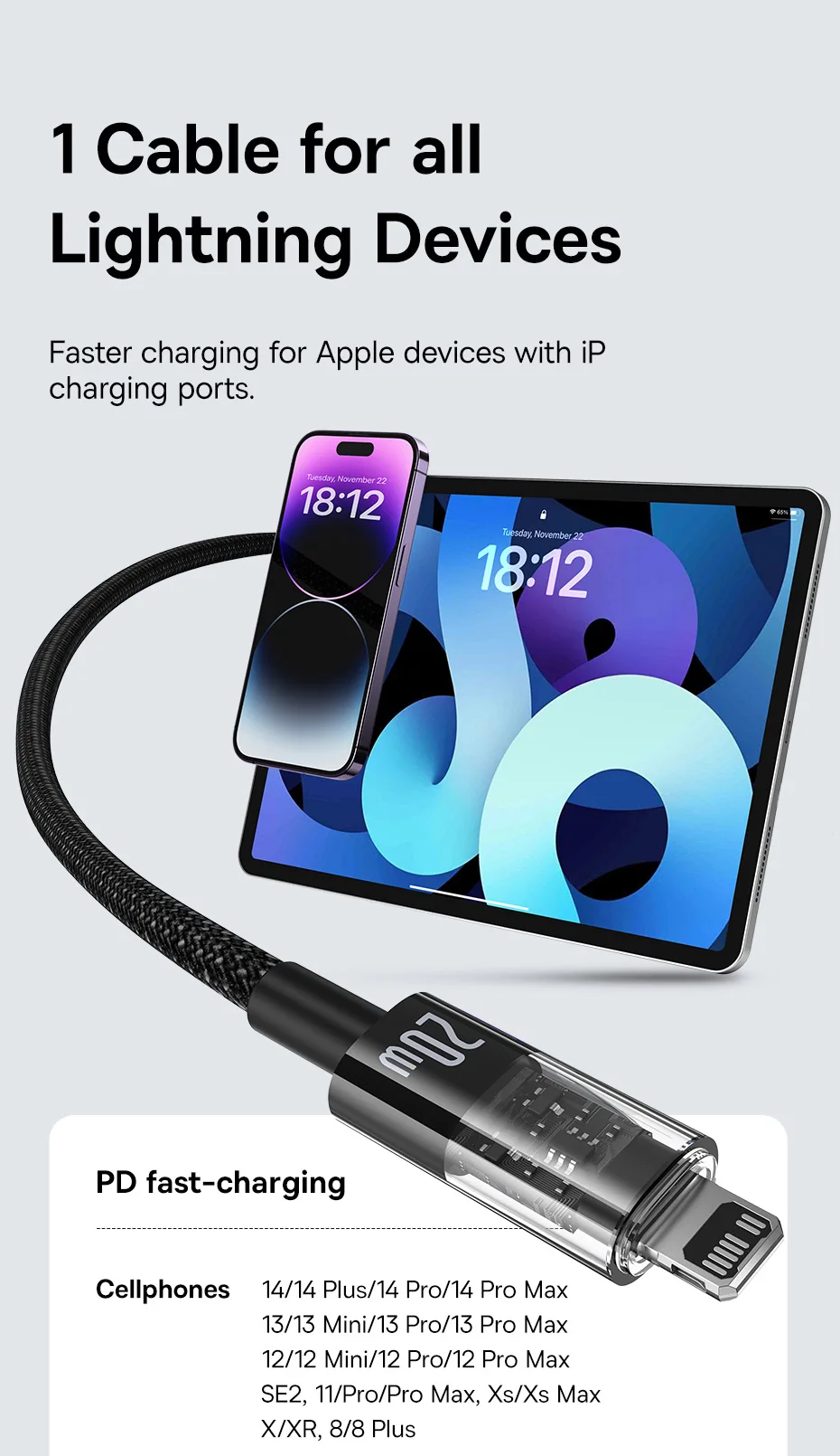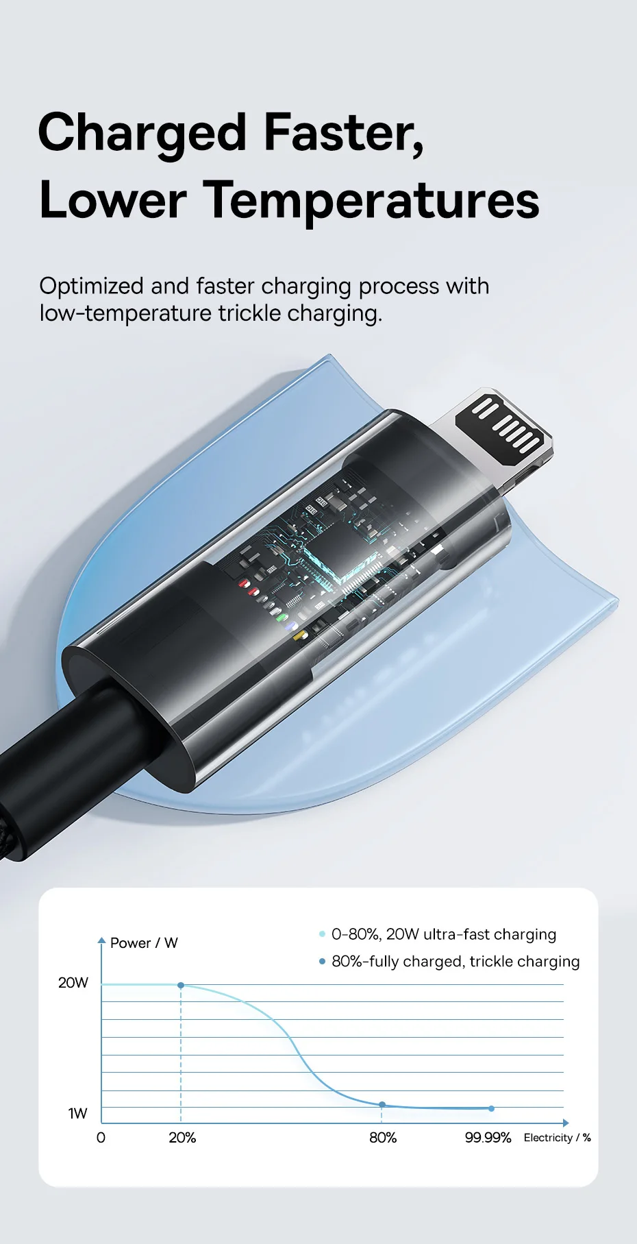 Carga más rápida para dispositivos Apple con puertos de carga iP.