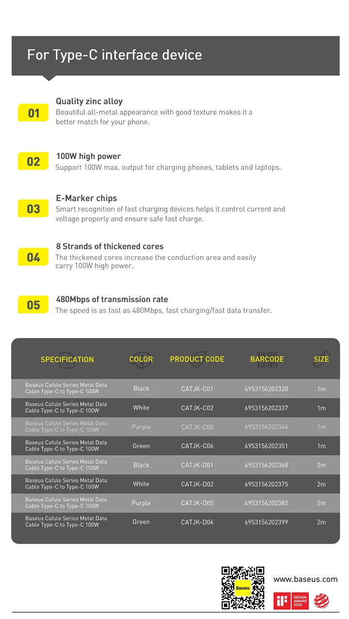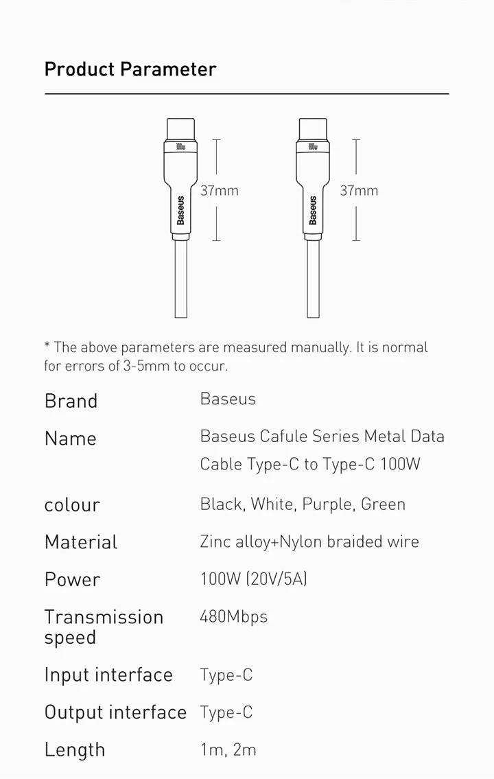 Comprar Cable Baseus USB C a USB tipo C de 100W para Macbook iPad USBC PD Cable de carga rápida 4,0 Cable tipo C para Xiaomi Samsung