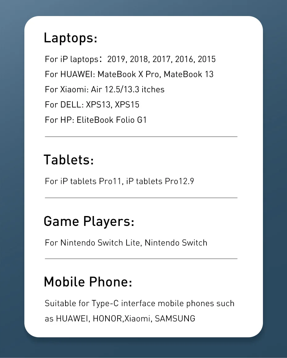 Soporta 20V/5A, 100W de carga rápida de alta potencia, puede cargar rápidamente computadoras portátiles, eficiente y estable.