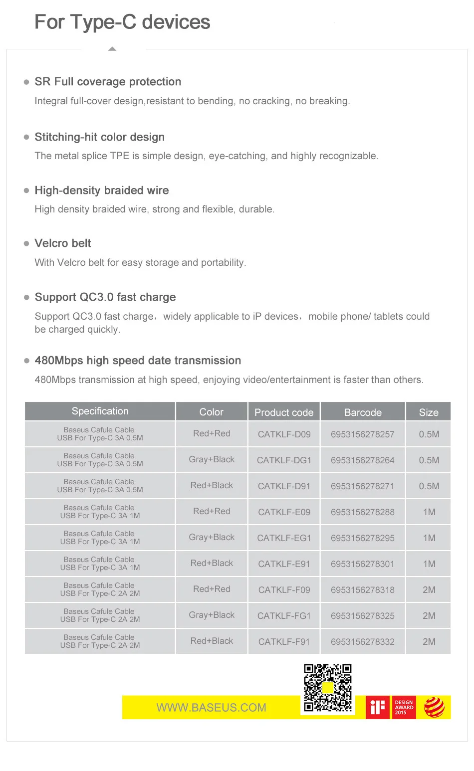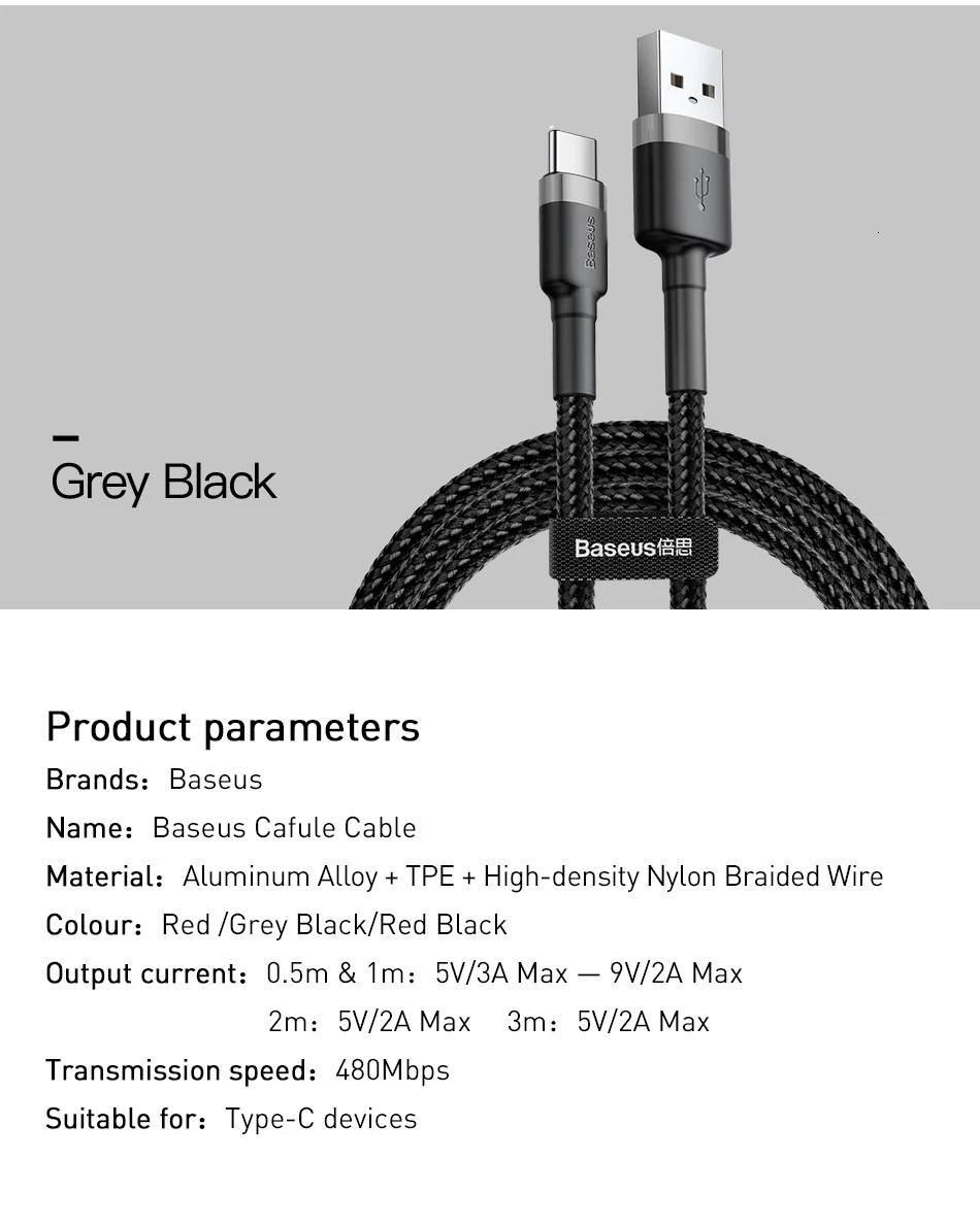 Comprar Cable Baseus USB tipo C para Xiaomi Redmi Note 9 8 Pro Cable Tipo C carga rápida para Samsung Cable Kabel USB C Cable de USB-C