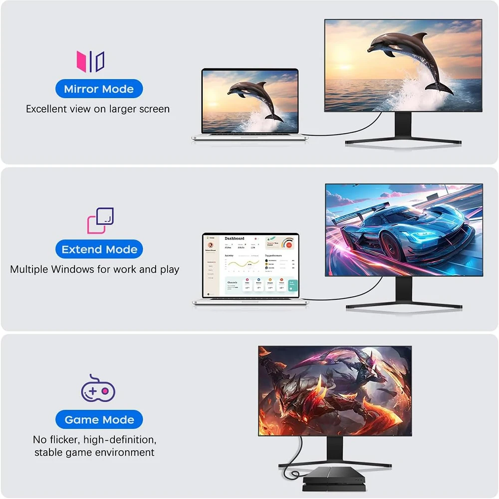 【Plug and play】 Operación simple, simplemente colóquelo en la PUERTA tipo A compatible con HDMI y el puerto DVI-D para realizar la transmisión simultánea de video y audio, ideal para vídeos, juegos y presentaciones.